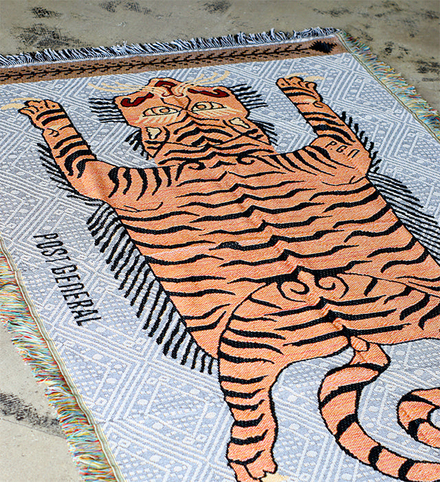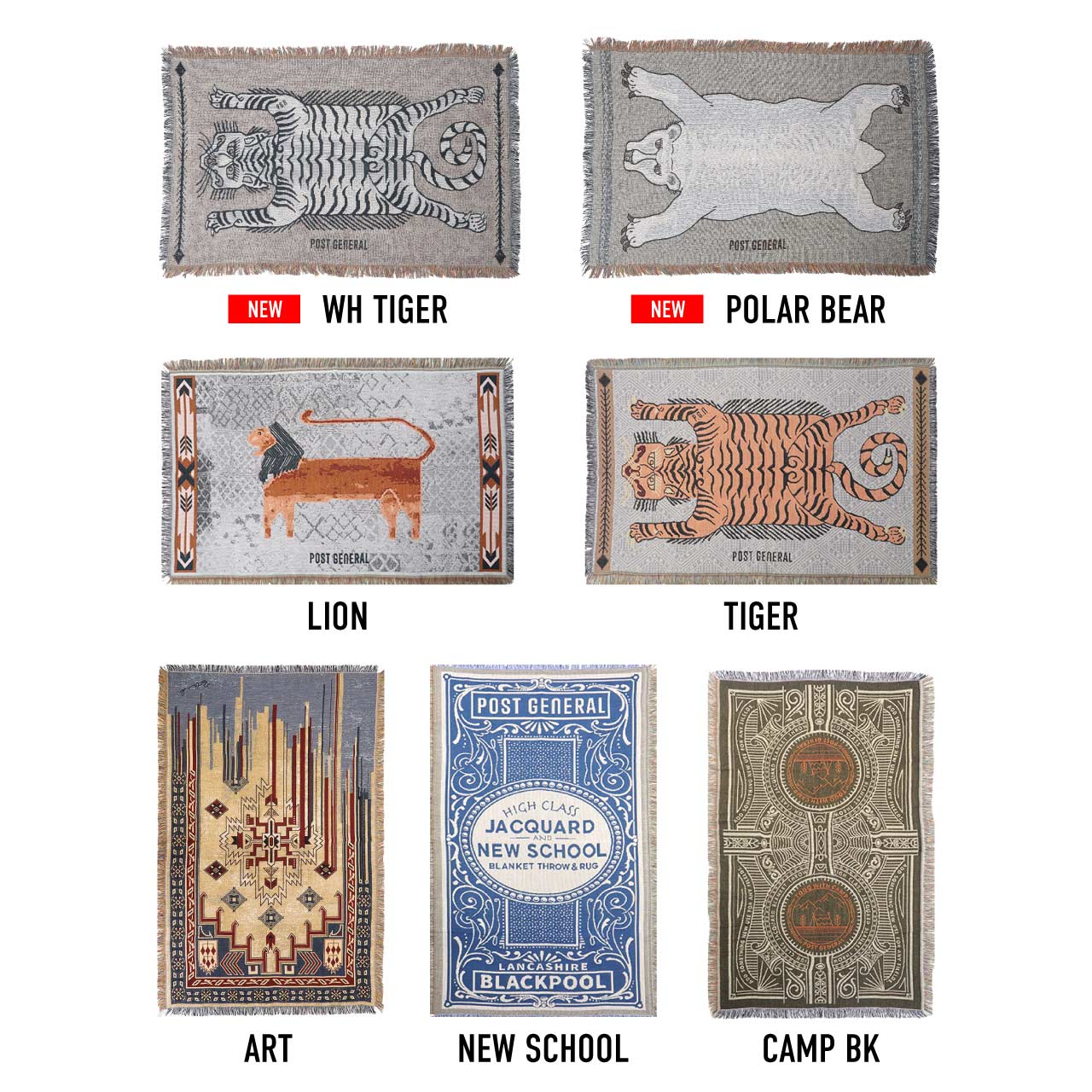 季節を問わず通年使える素材感。 TO-GOラグで人気のデザインがスローケットになりました。ソファやベッドサイドでのインテリアケットとしてはもちろん、芝生に直接敷いてピクニックラグとして使ったり、アウトドアシーンでのひざ掛けや、羽織るオールシーズンケットとしてもお使い頂けます。シンプルなお部屋にざっくり置いてあるだけでも、雰囲気がありとってもおしゃれ。フロアマットとしてもインパクトがあり、敷くだけでお部屋の雰囲気をガラッと変えてくれますよ。キャンプシーンでは、敷物としてはもちろん肌寒い時の羽織にもおすすめ。専用のキャリーバッグ付きで持ち運びにも便利です。【NEW】人気のチベタン風ホワイトタイガー「WH TIGER」とシロクマをモチーフにした「POLAR BEAR」の2種類の柄が新登場!どちらもインパクトのあるユニークなデザインです。