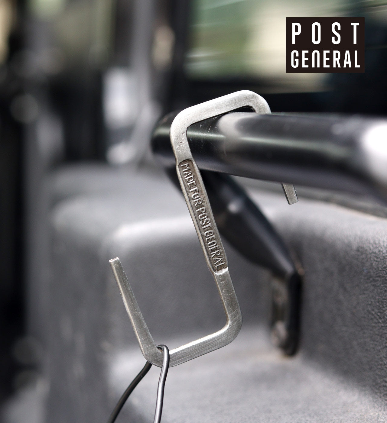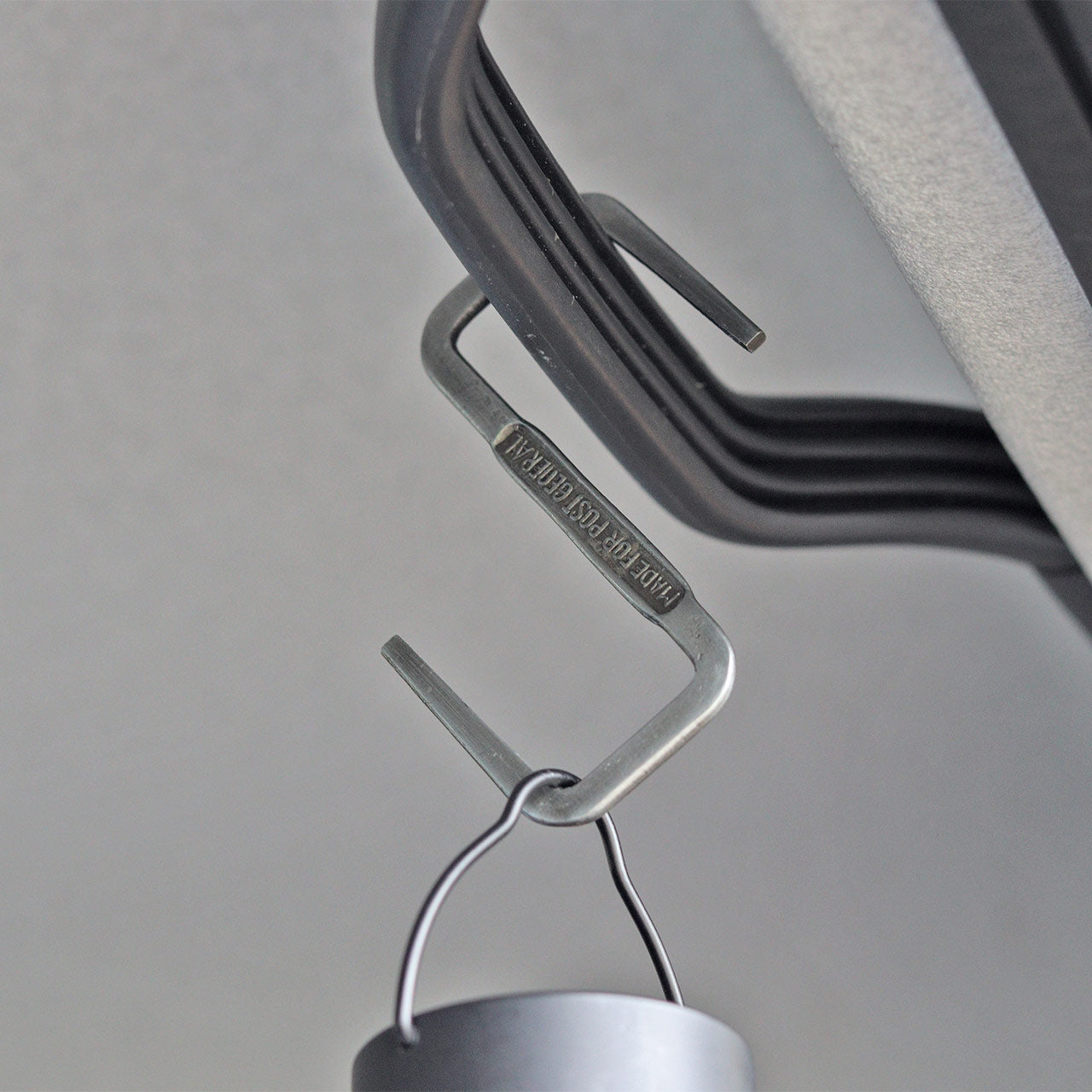 一点一点職人が手作業で加工し仕上げた、無骨な鉄の風合いが他にはない素材感を醸し出しているインダストリアルフック。 アウトドアシーンで1つあるだけで重宝するS字フック。 ランタンを吊り下げたり、荷物を吊り下げたり様々なシーンでお使いいただけます。 ハンドメイドの味のある風合い。 「MADE FOR POST GENERAL』の刻印がワンポイントに。 無骨な雰囲気のあるS字フックはキャンプシーンの雰囲気をさりげなく演出してくれます。 取手がある場所ならどこにでも設置が可能。 シンプルなデザインなので、インテリアの邪魔をしません。 フックのタイプは3パターン。 合わせて使うと統一感も出て◎