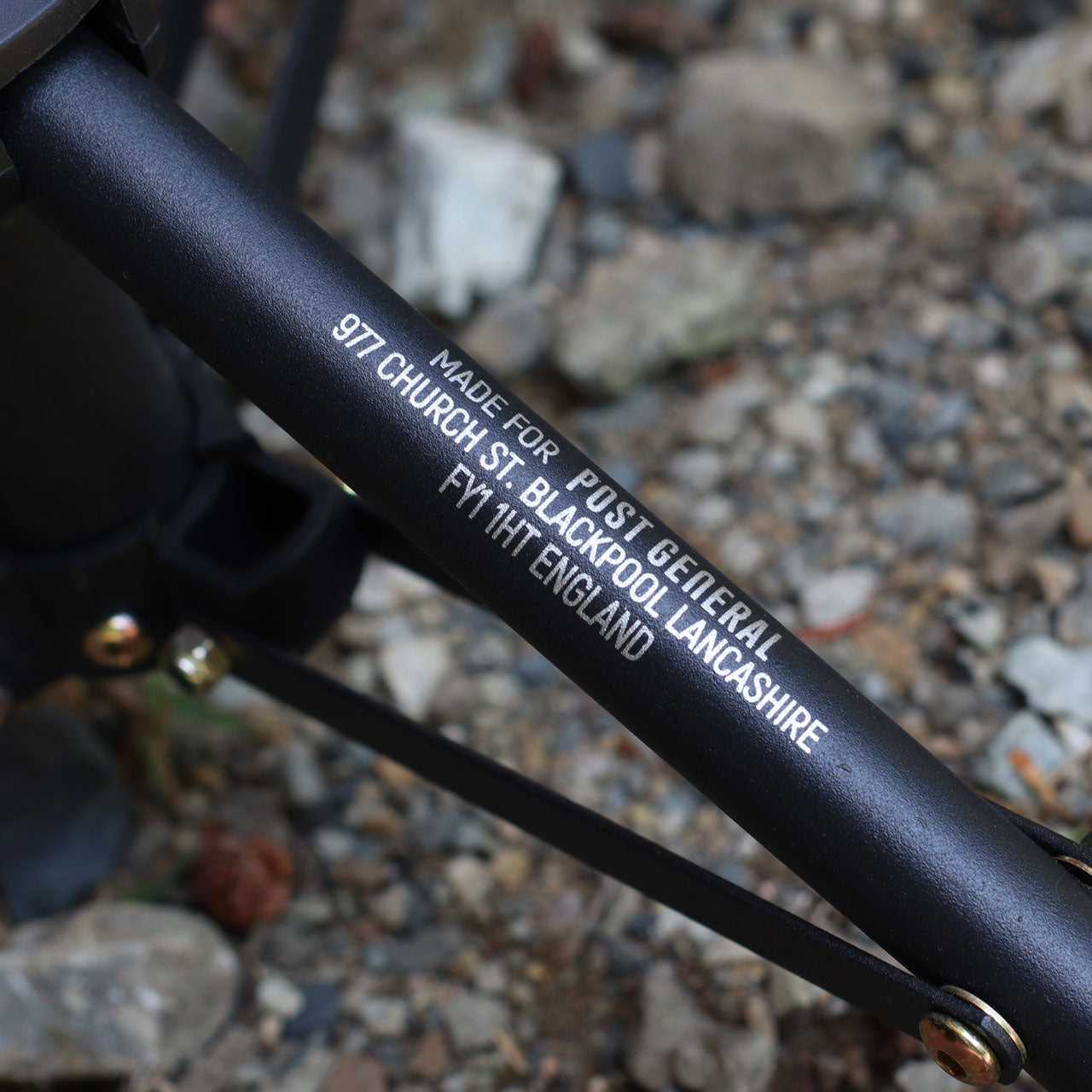 カメラ用の三脚をベースに 専用天板をセットにした多機能ギア。天板には2箇所、横に大きい溝穴があり、 フックなどを引っかけることができます。三脚は高さ48~132cmまで調節が可能。ご使用のシーンに合わせて使いやすい位置に調節いただけます。また、三脚のポールにはランタンなどを下げれる フックが2箇所ついています。天板はカメラ用のクイックリリースマウントを使用して設置します。3ステップで脱着できるので、準備や片付けも手間取りません。三脚の足元にはPOST GENERALのロゴをアクセントに。持ち運び、収納に便利なキャリーバッグ付きです。お好きなサイズの天板を用意いただき、車のトランクなどに 橋渡ししていただくとカーサイドテーブル用の脚としてもお楽しみいただけます。