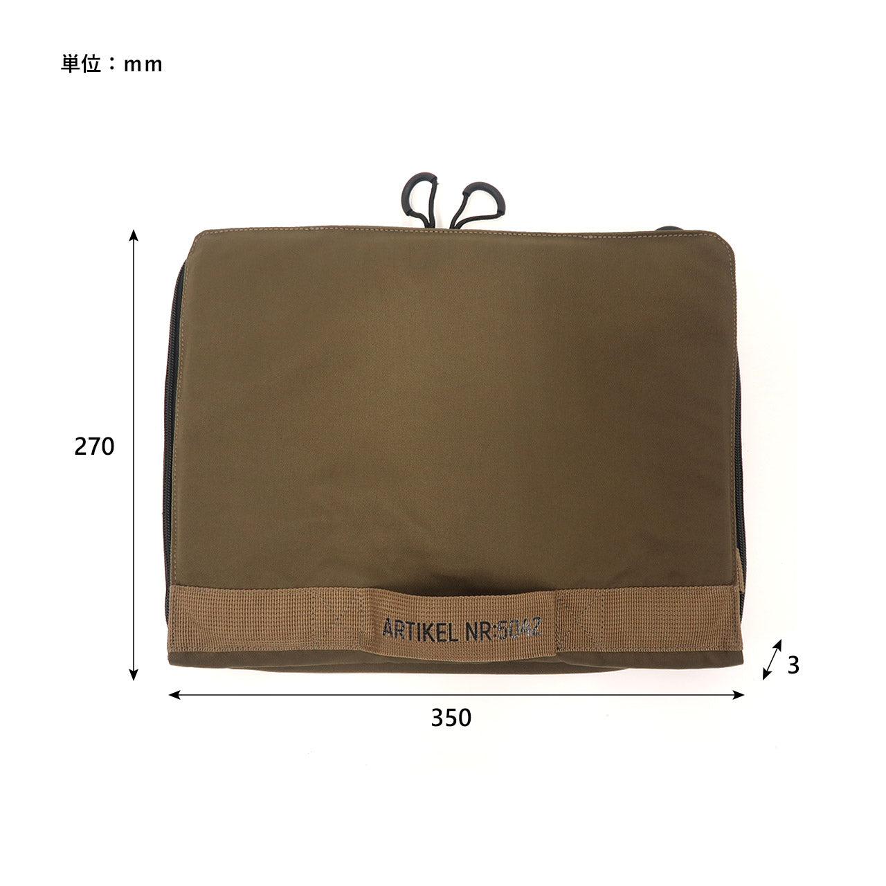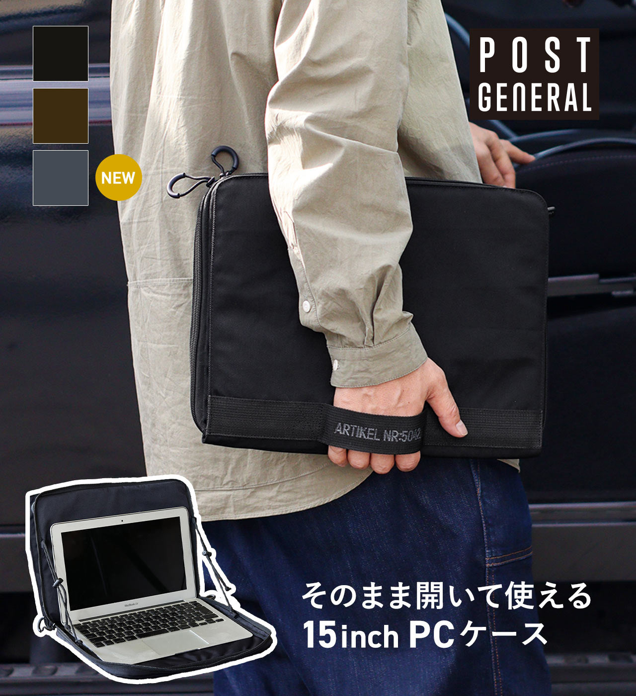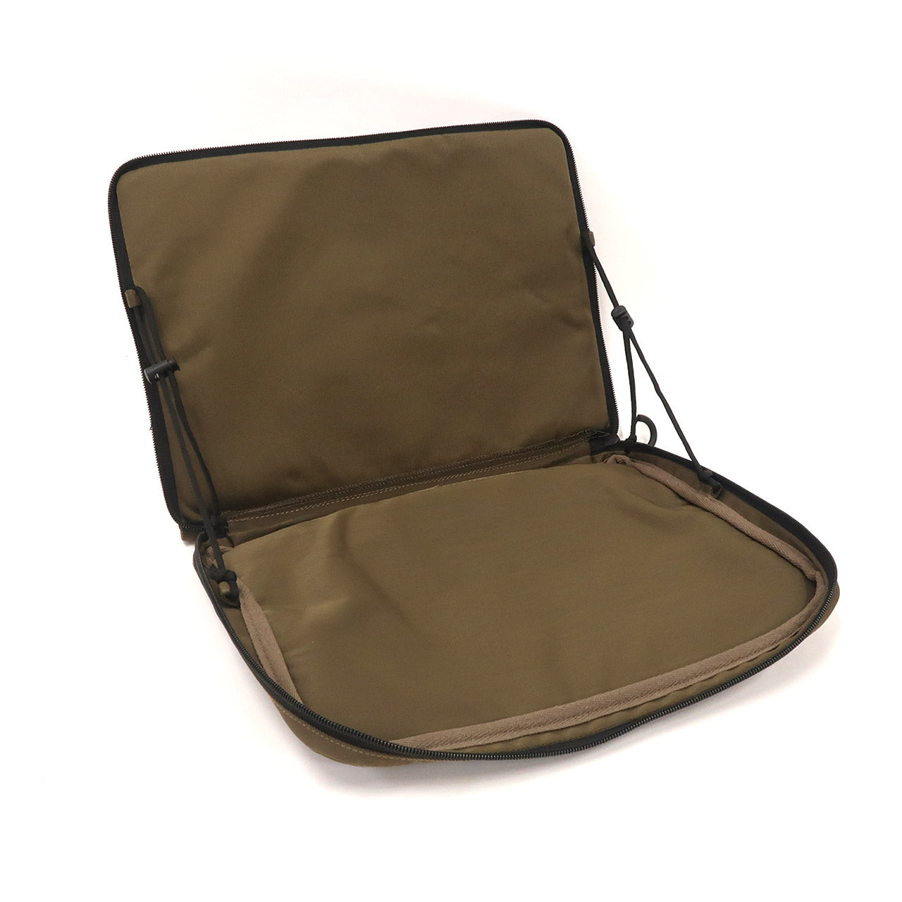 手持ちしやすいハンドルベルト付きのノートPC・タブレットバッグ。シンプルなアウトドアテイストのデザイン。ガジェット類の持ち運び以外にもA4サイズの書類や手帳などの文房具・貴重品をまとめるポーチとしてもお使いいただけます。サイズは15インチまでのノートPC・タブレットに対応しています。ノートPCを入れた状態で使えるデザインなので、カフェや新幹線などスペースが限られた場所でさっとメールを確認したい時などに便利です。(※放熱性が落ちるため、長時間パソコンを使用される場合はケースから取り出してご利用ください。)コードストッパーで紐の長さを調節することで画面の角度調節が可能です。さらに、コードの収納に便利なメッシュポーチと筆記用具やスマートフォンなど貴重品を入れられる小物収納スペースが付いています。オリーブブラウン、ブラック、ダークグレーの3カラー。出張や旅行、日々の通勤時に大切なガジェットを守る収納バッグです。