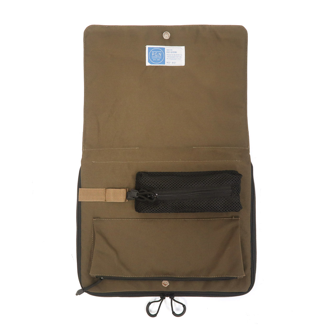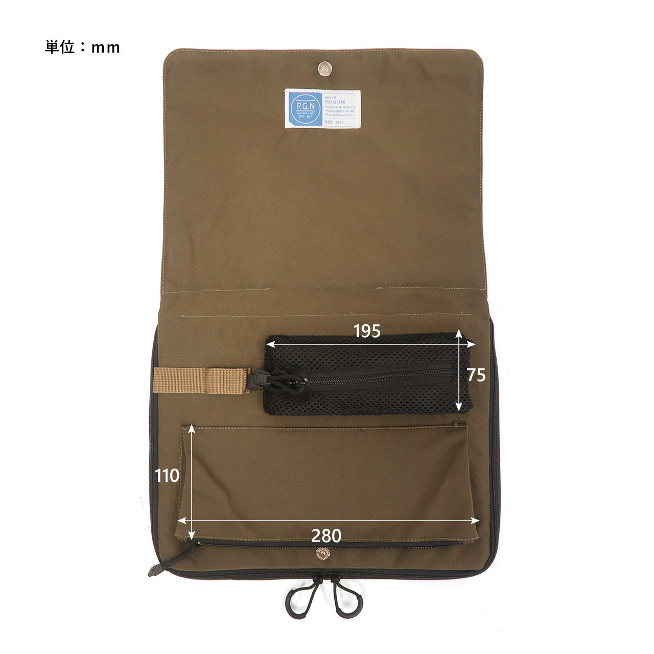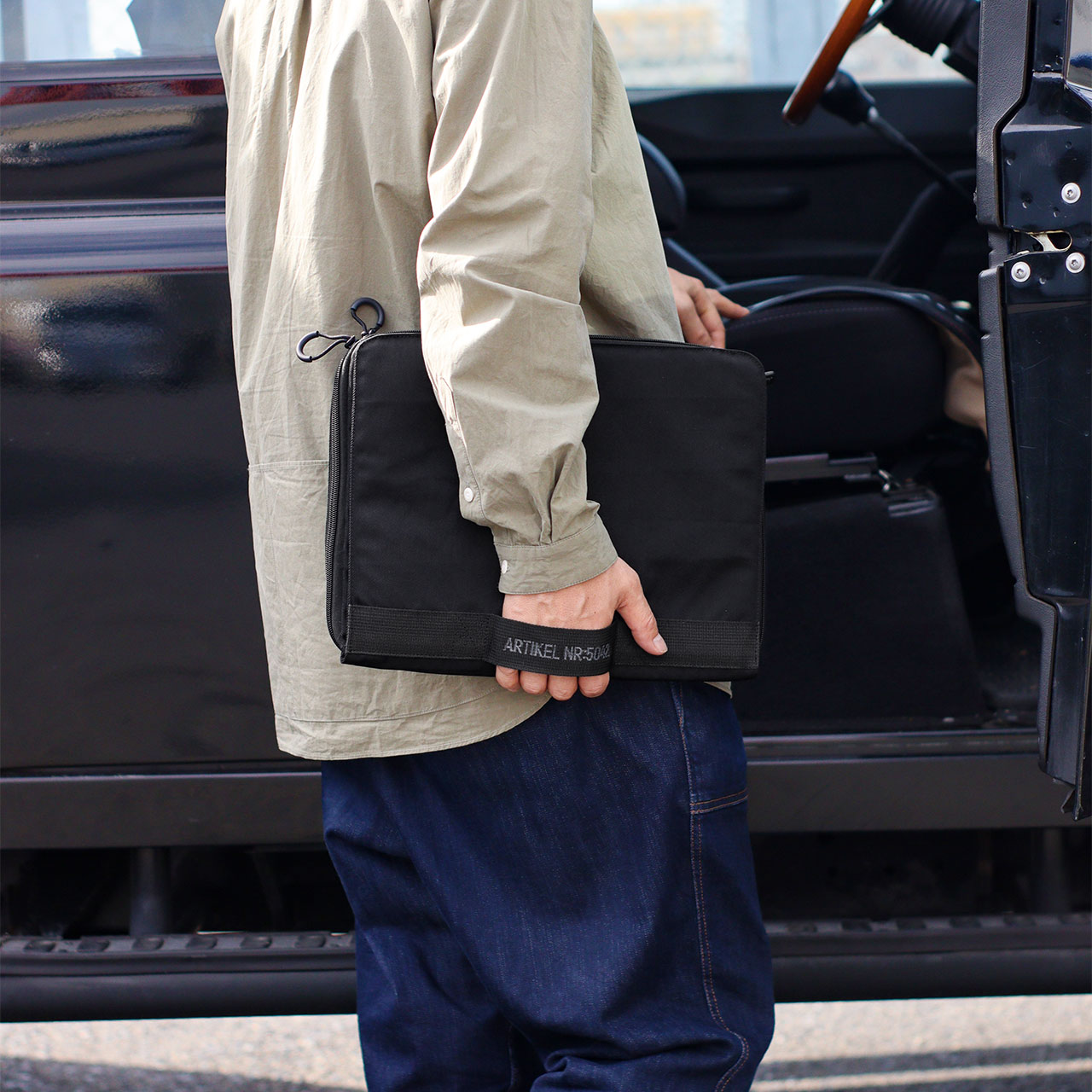 手持ちしやすいハンドルベルト付きのノートPC・タブレットバッグ。シンプルなアウトドアテイストのデザイン。ガジェット類の持ち運び以外にもA4サイズの書類や手帳などの文房具・貴重品をまとめるポーチとしてもお使いいただけます。サイズは15インチまでのノートPC・タブレットに対応しています。ノートPCを入れた状態で使えるデザインなので、カフェや新幹線などスペースが限られた場所でさっとメールを確認したい時などに便利です。(※放熱性が落ちるため、長時間パソコンを使用される場合はケースから取り出してご利用ください。)コードストッパーで紐の長さを調節することで画面の角度調節が可能です。さらに、コードの収納に便利なメッシュポーチと筆記用具やスマートフォンなど貴重品を入れられる小物収納スペースが付いています。オリーブブラウン、ブラック、ダークグレーの3カラー。出張や旅行、日々の通勤時に大切なガジェットを守る収納バッグです。
