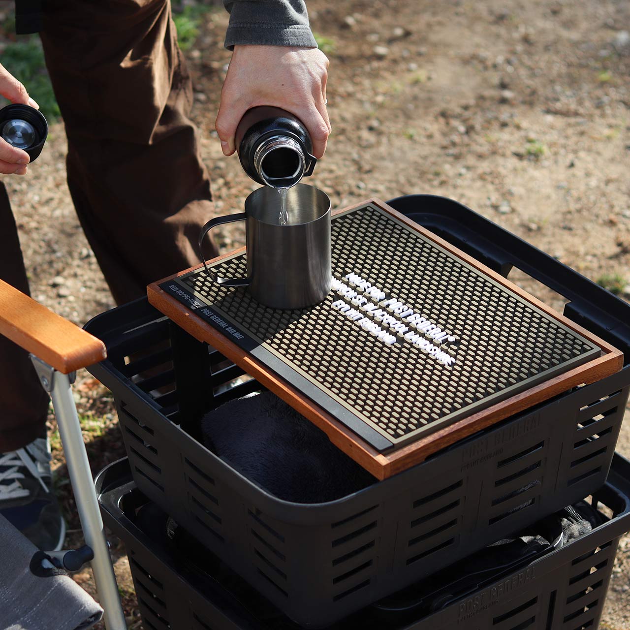 プレースマットとしても使える水切りマット。アウトドアギアと相性の良いアースカラー。 水滴で濡れたグラスやボトルなど滑りやすい物を置いたり、キャンプシーンで洗い物の水切り台としても活躍します。 キャンプはもちろん、キッチンでも水切りマットとして。落ち着いたアースカラーなので、インテリアに合わせて小物を揃えたい方におすすめです。 キッチンの他観葉植物など水滴が気になる場所のプレースマットとしても活躍。 ゴム製なので汚れても水洗いが出来、清潔に保てます。 カラーはブラックとオリーブの2種類。サイズは、2サイズございます。