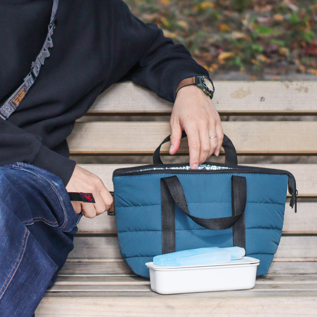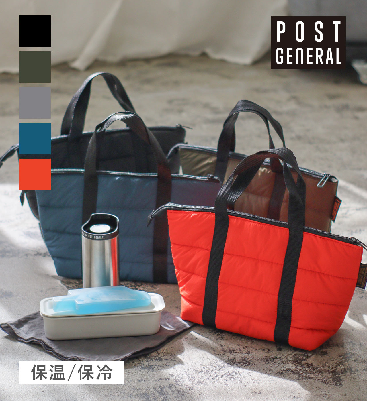 ナイロンキルティング生地を使用した、保冷・保温効果のあるランチバッグ。バッグの内側には保冷・保温効果のあるアルミ蒸着シートを使用しており、保冷剤と合わせてご使用いただくとより保冷効果がアップします。断熱材と緩衝材の役割を兼ねた中綿入りなので、お弁当以外にもカメラやガジェット類など傷から守りたい物の収納にもおすすめです。スムーズに開閉出来るファスナー付きで、バッグの口も大きく開くため出し入れも楽ちん。カラーは、ベーシックで合わせやすい「ブラック」「グレー」「オリーブ」、ワンポイントになる「レッド」「フォレストグリーン」の全5色。ランチバッグに見えないシンプルなデザインなので、コンビニなどちょっとしたお買い物にも違和感なくお使いいただけます。