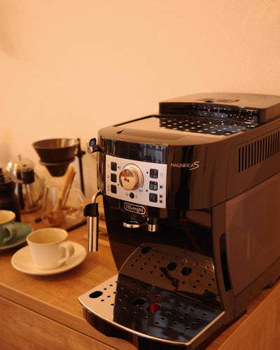 インテリアにも合うスタイリッシュデザインの全自動コーヒーマシンです。水・豆量も選んだメニューごとに最適量を自動で設定可能です。豆を挽くところから、抽出・洗浄まで、ボタンひとつで、スムーズです。いつでも挽きたてのコーヒーを楽しめます。
