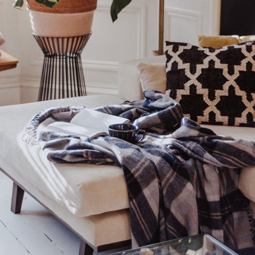 リサイクルウールを使用した、スコットランド生まれのブランケットです。衣服に使用されたウールを再利用し、再生繊維とブレンドすることで、やわらかく、保温性と耐久性のあるブランケットに仕上げています。また、全てのブランケットは、洗濯機で丸洗いが可能です。掛け布団の上に掛けると、ベッドルームのデザイン性と保温性を高めてくれます。