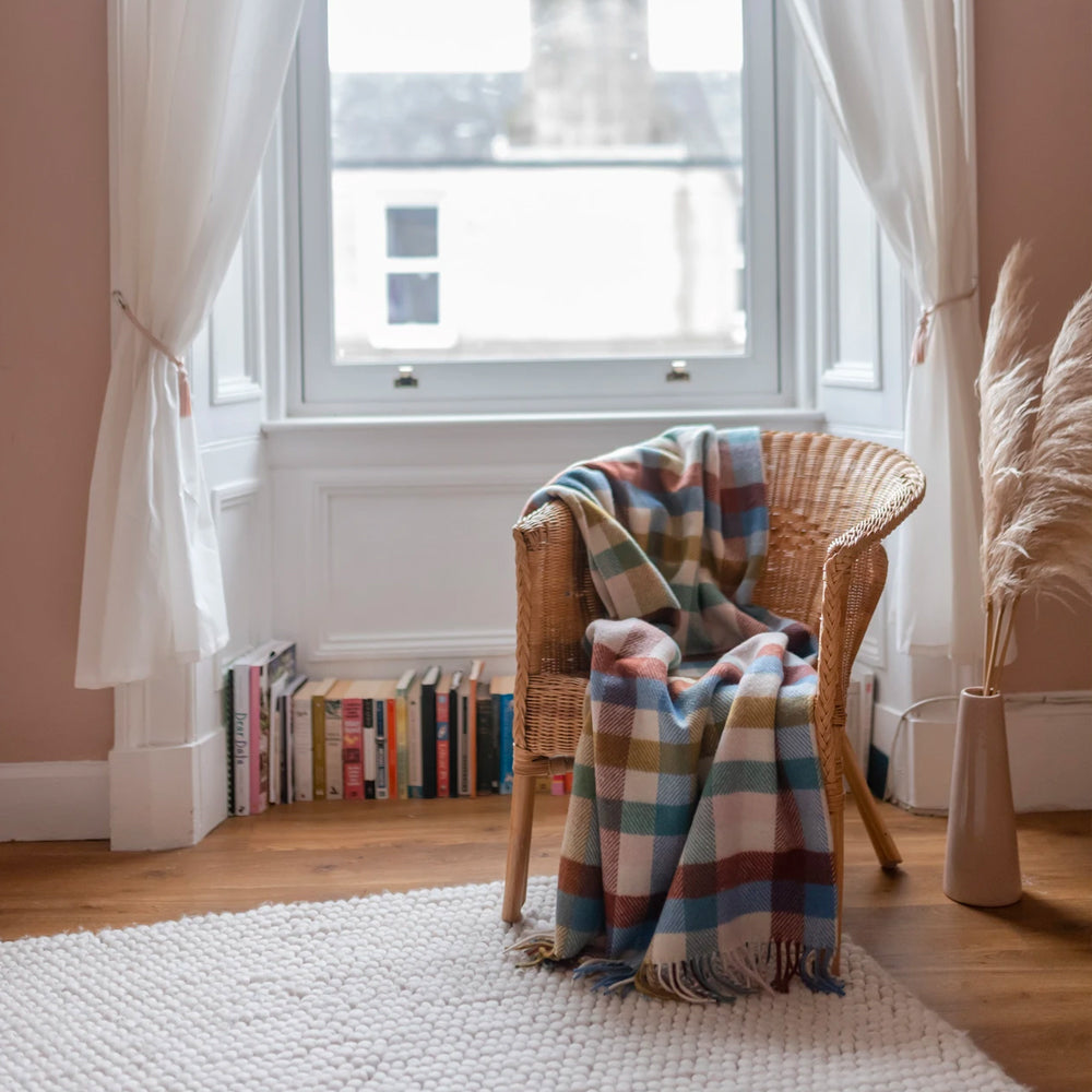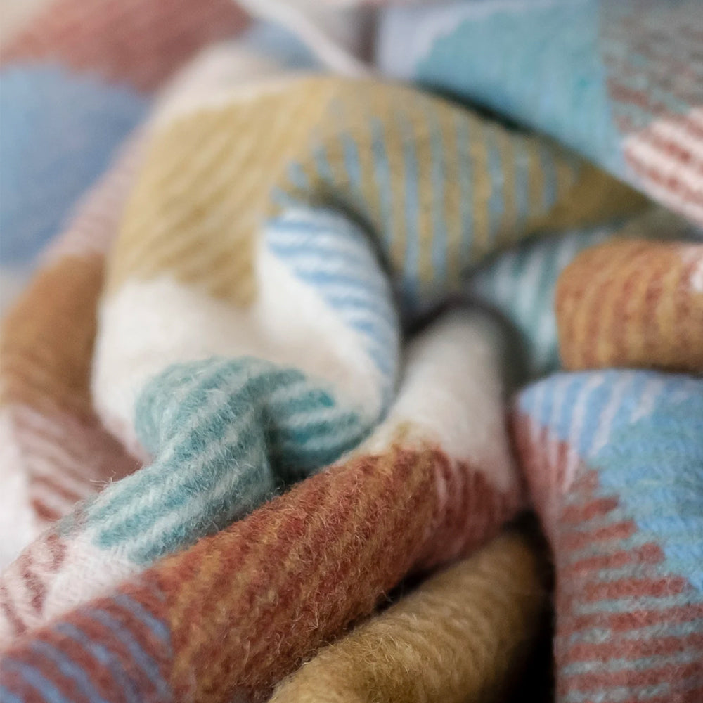 リサイクルウールを使用した、スコットランド生まれのブランケットです。衣服に使用されたウールを再利用し、再生繊維とブレンドすることで、やわらかく、保温性と耐久性のあるブランケットに仕上げています。また、全てのブランケットは、洗濯機で丸洗いが可能です。掛け布団の上に掛けると、ベッドルームのデザイン性と保温性を高めてくれます。