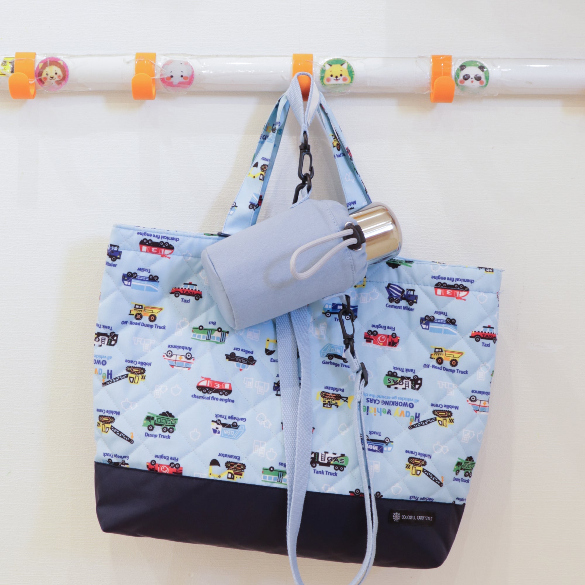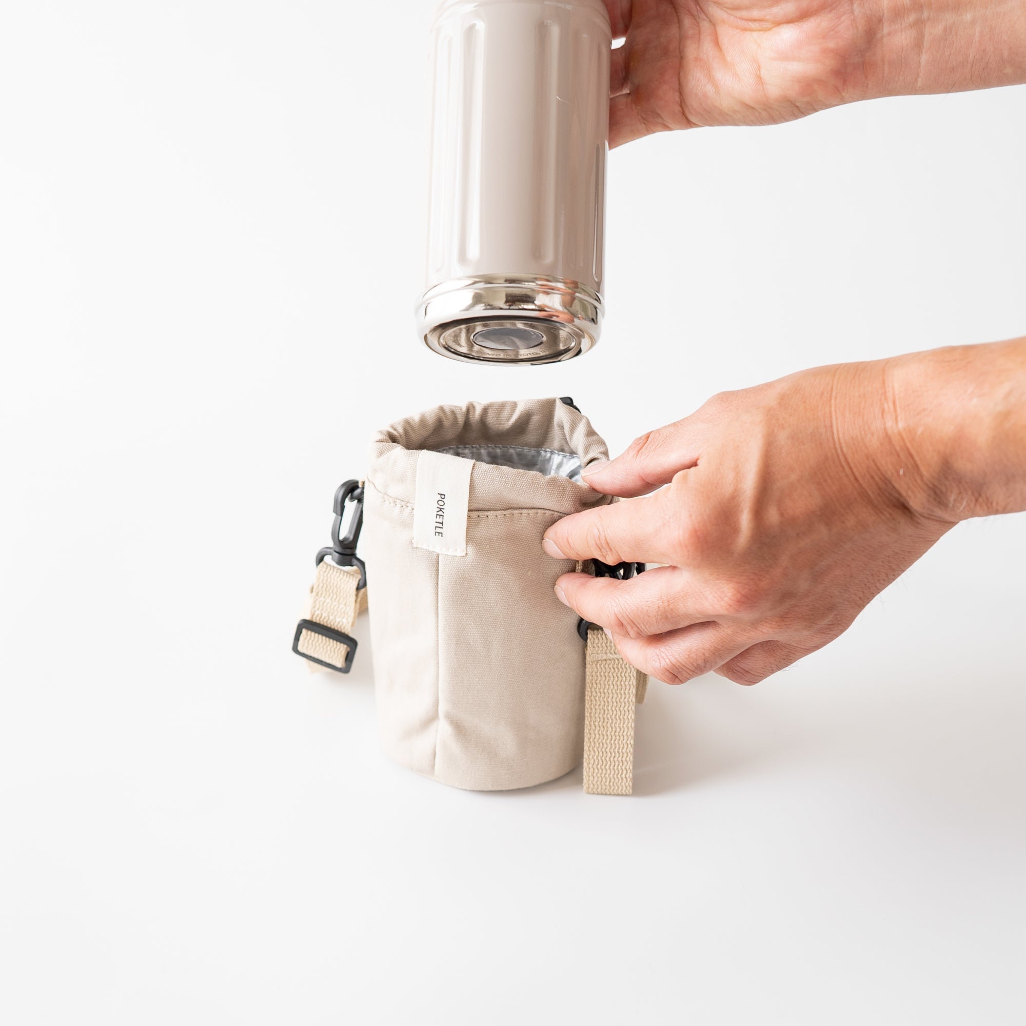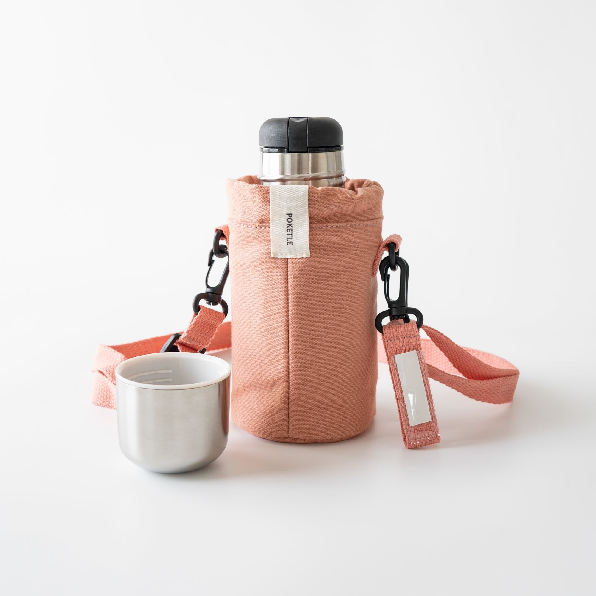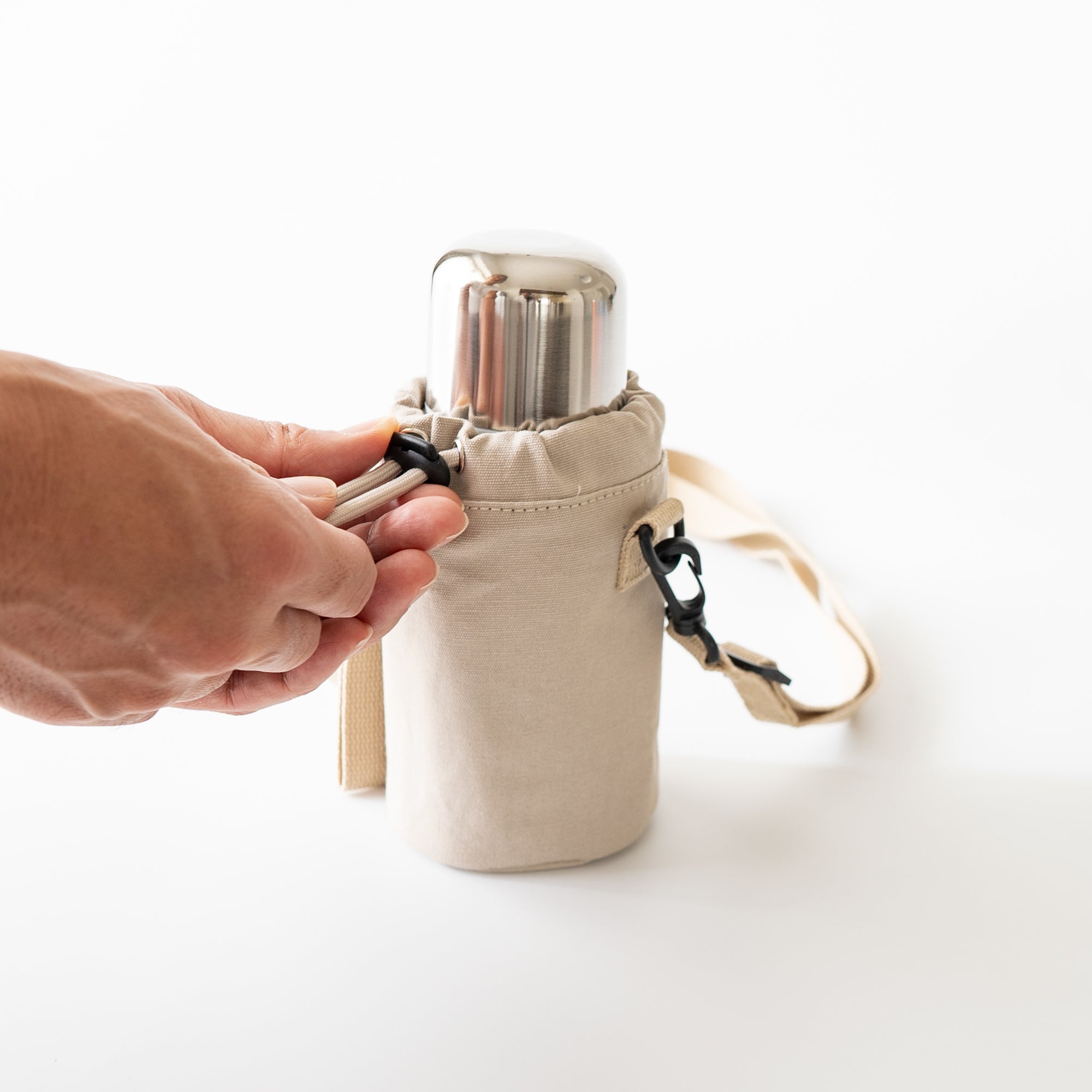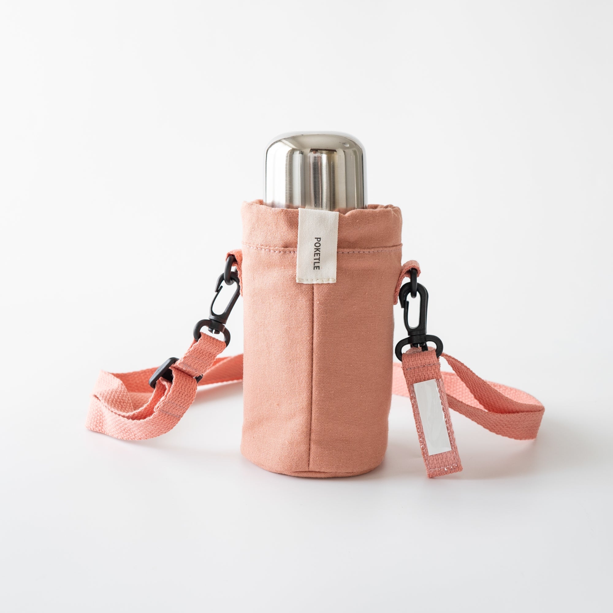大きなフックにもかけられるネームループつきで、ファブリック感のある生地を使用したやさしいカラーとフォルムが特徴です。耐久性も持たせ、衝撃を緩和し、水筒の破損を防ぎます。カバーを装着したまま、給水可能です。ペットボトルも入れられる仕様で保冷機能もあります。ショルダーは調整可能で、最長126.5cmまで調整できるから、成長期のお子様で安心です。ボトルに合わせてカラーも3色からお選びいただけます。