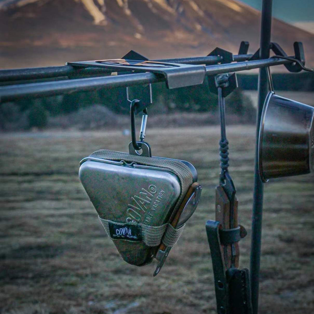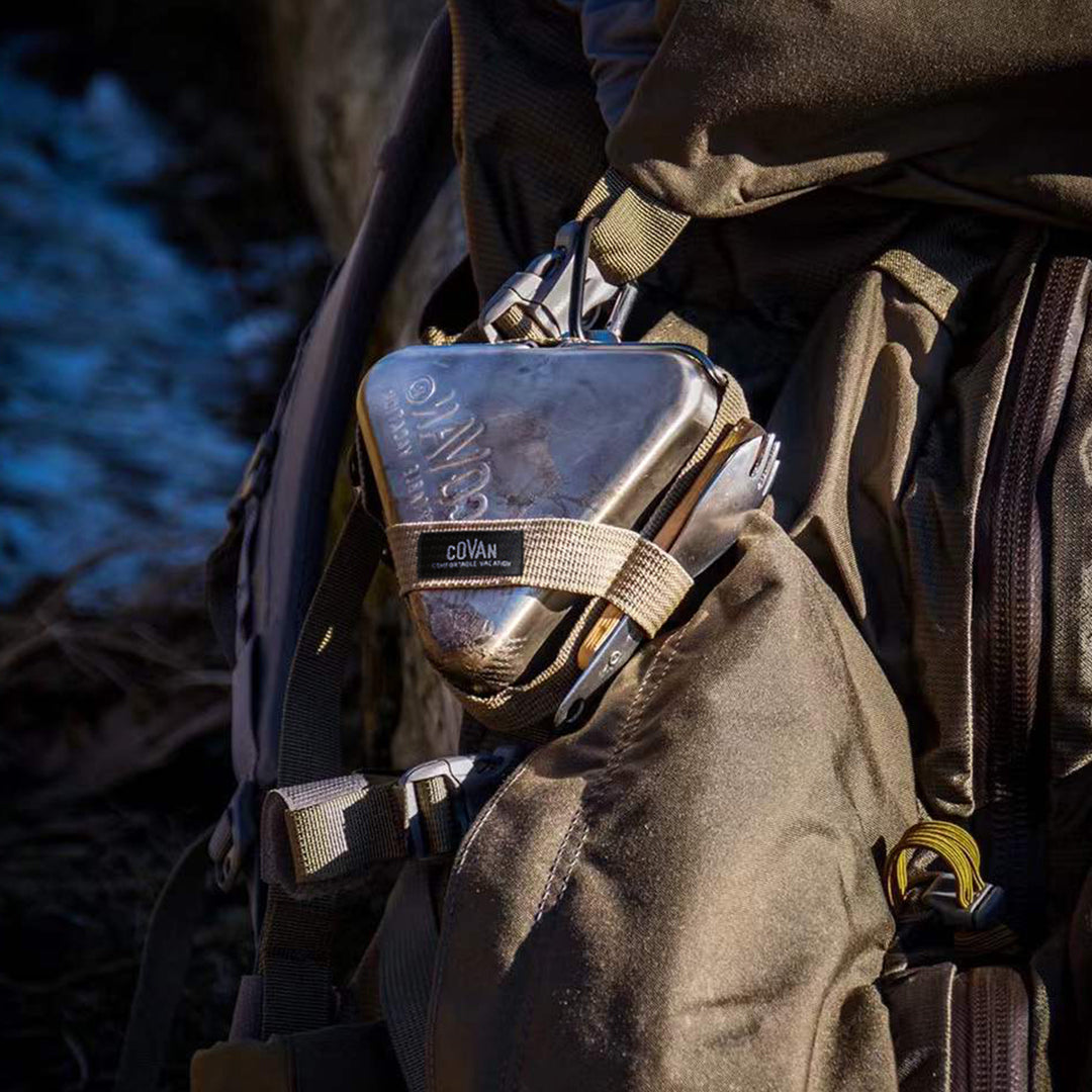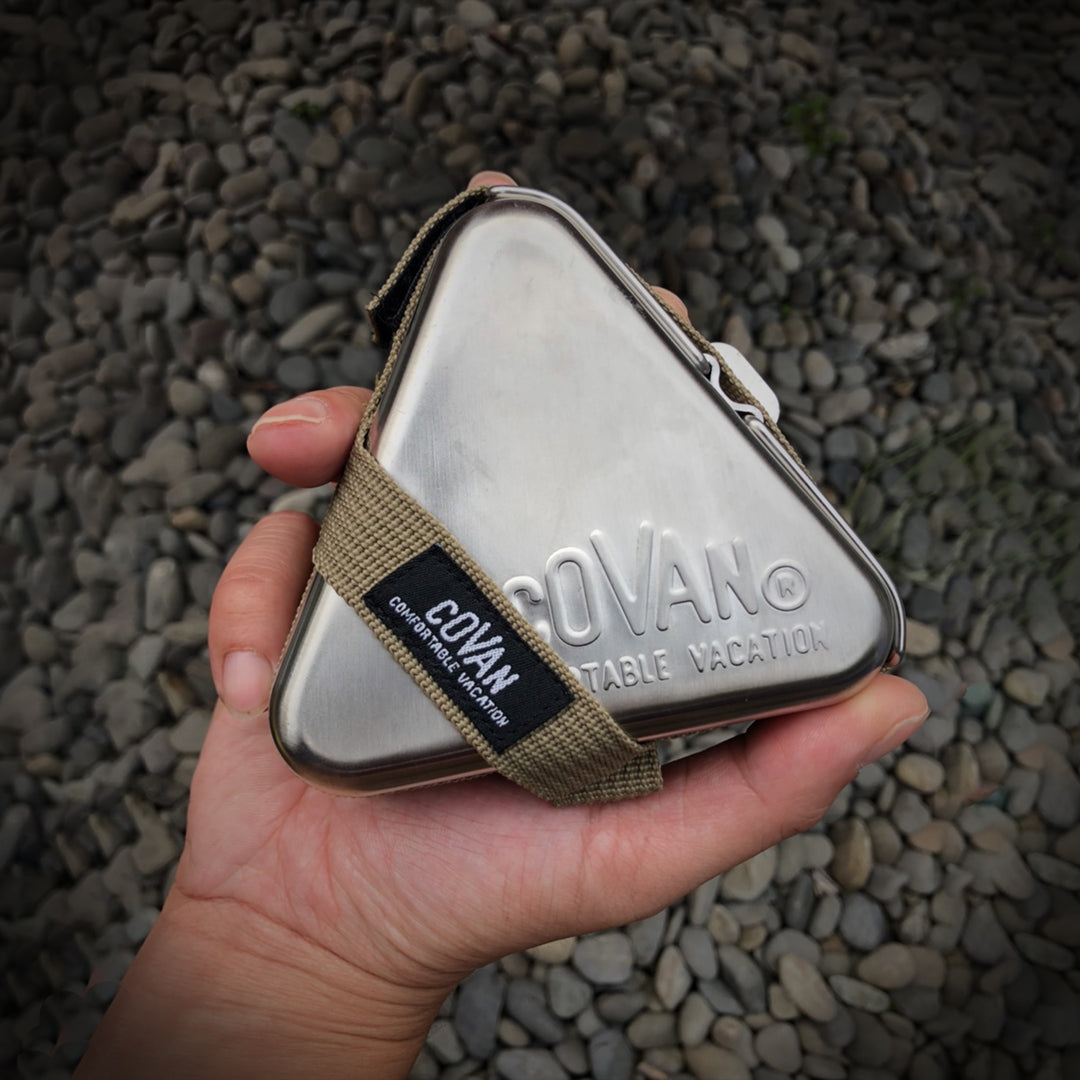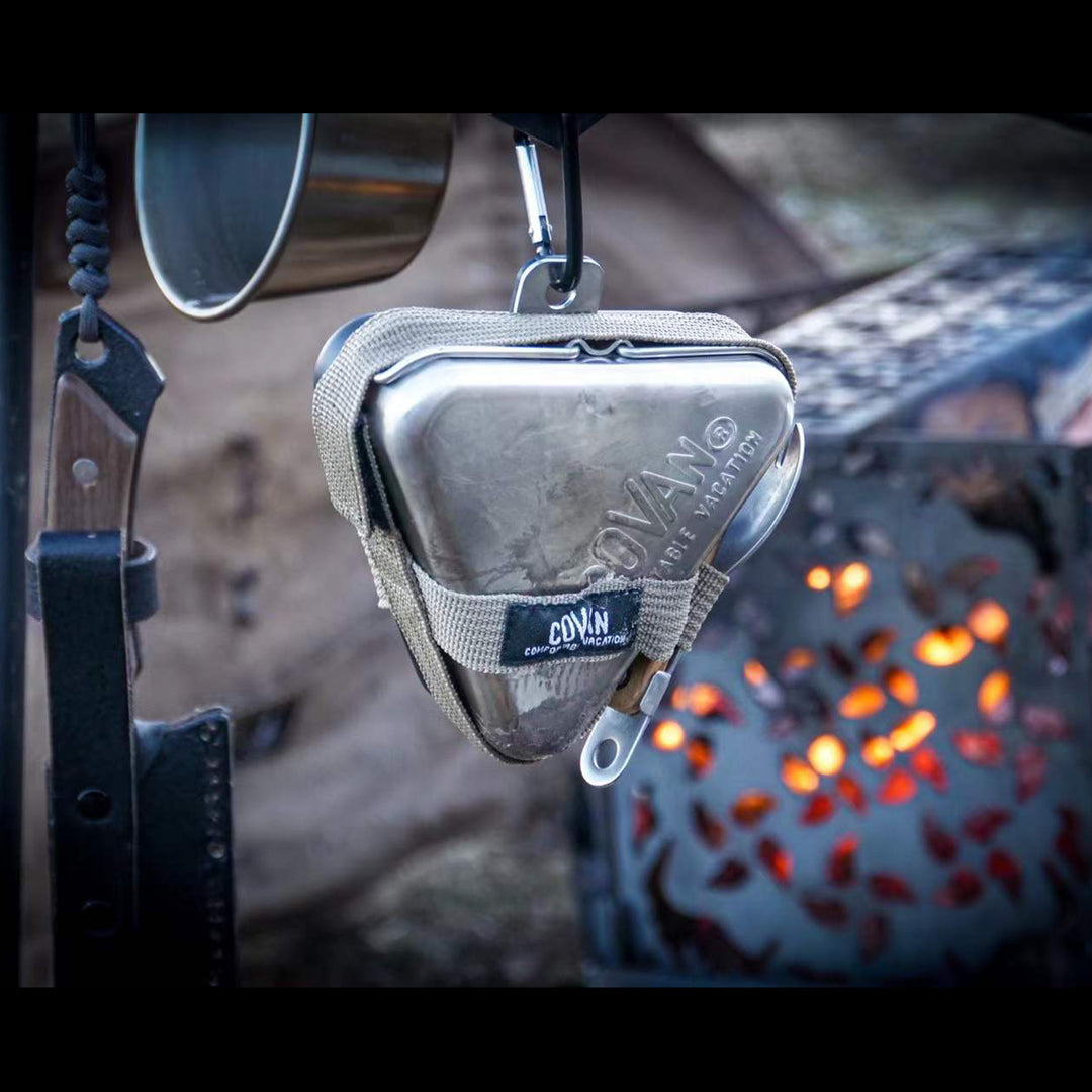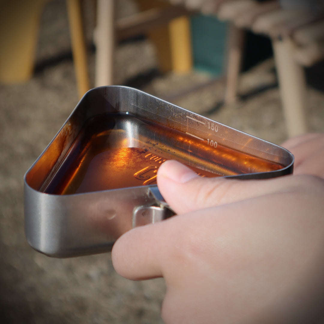 おにぎり1個で、究極のソロ飯完成。深絞りで仕上げたステンレスの質感が硬派なギア。ステンレスパーツはシェラカップ・計量カップになります。直火にかけられるからシングルバーナーがあれば調理も可能。新潟燕三条産ステンレス&天然木のスポークが付いているので