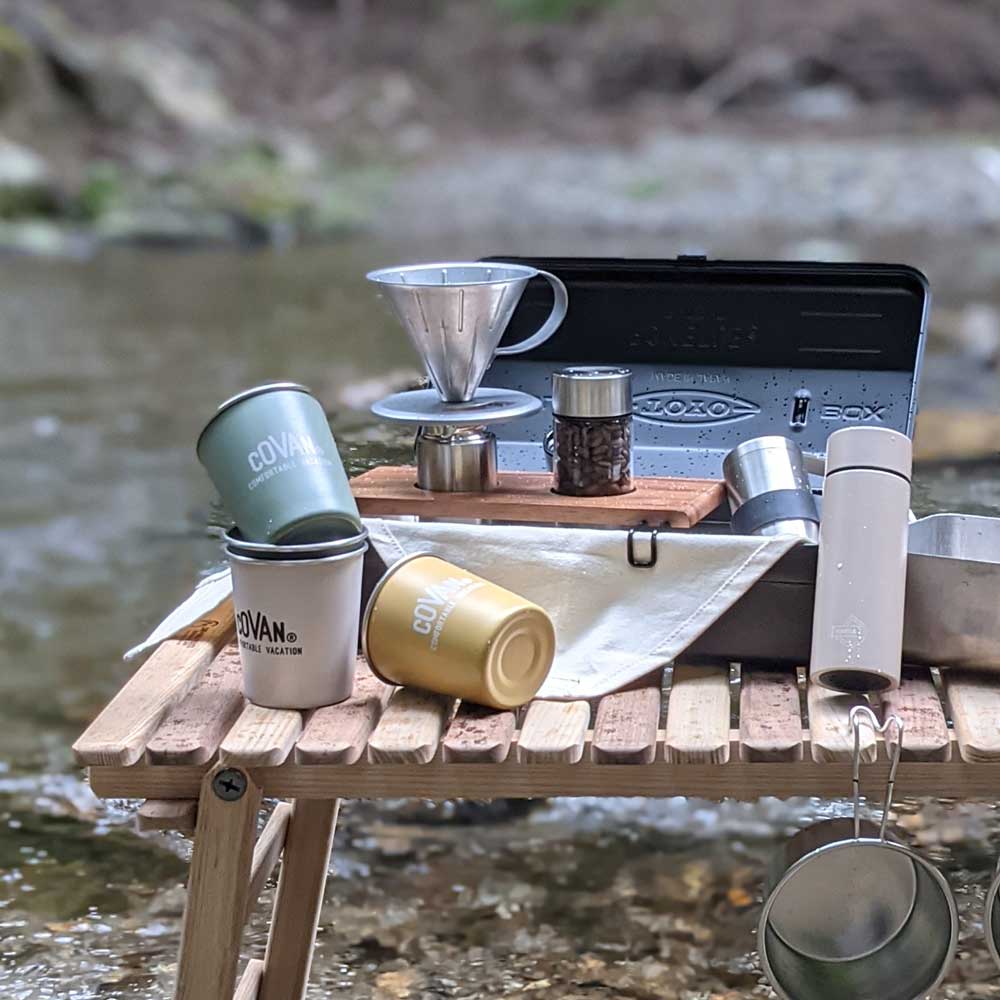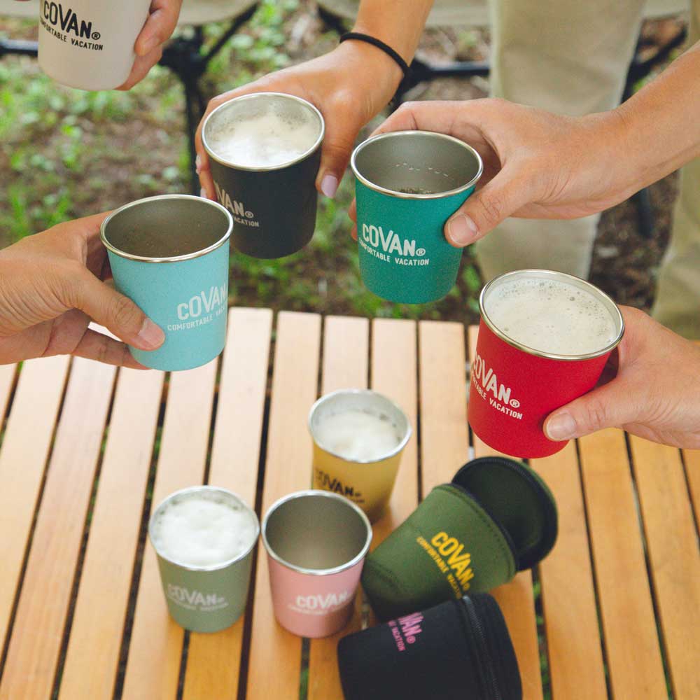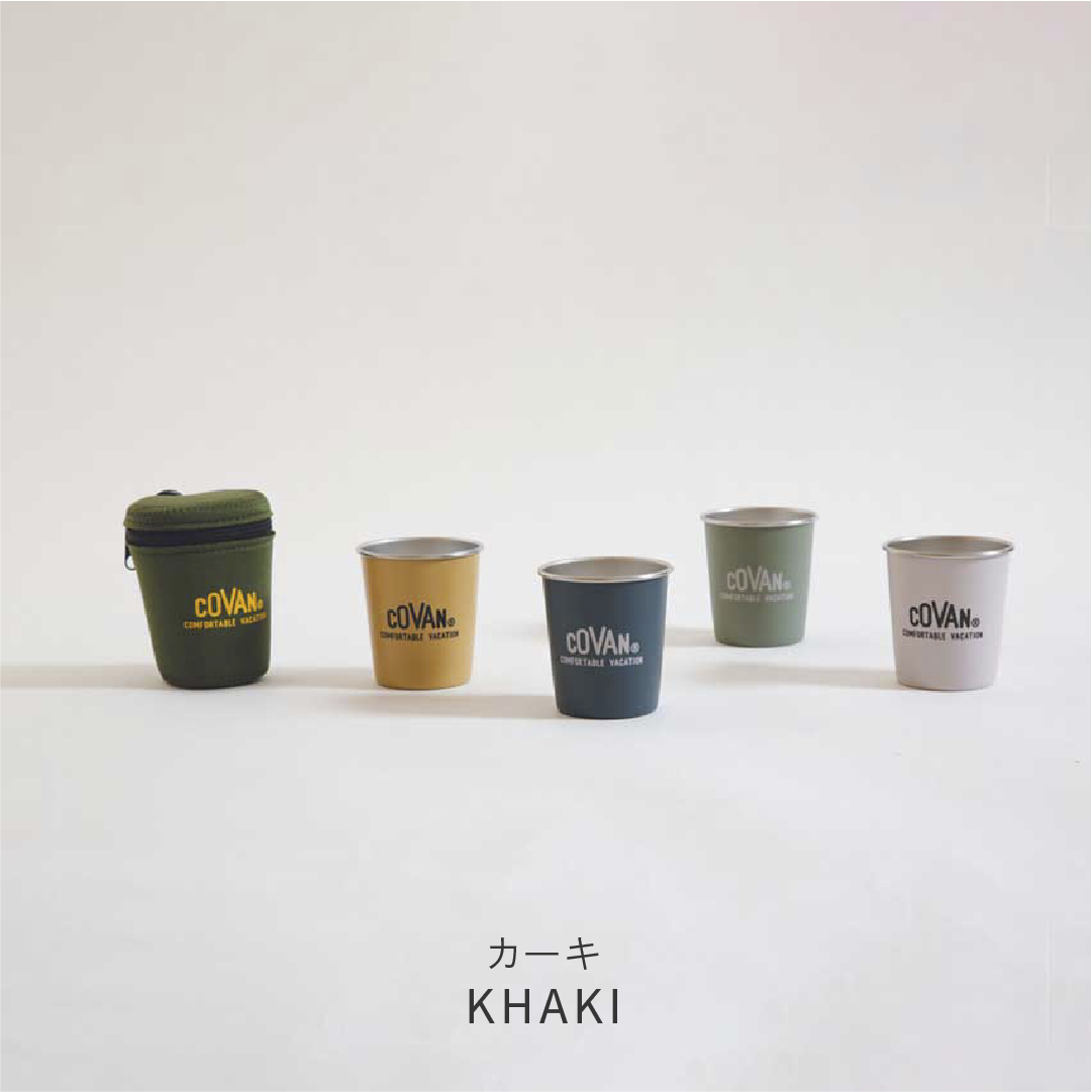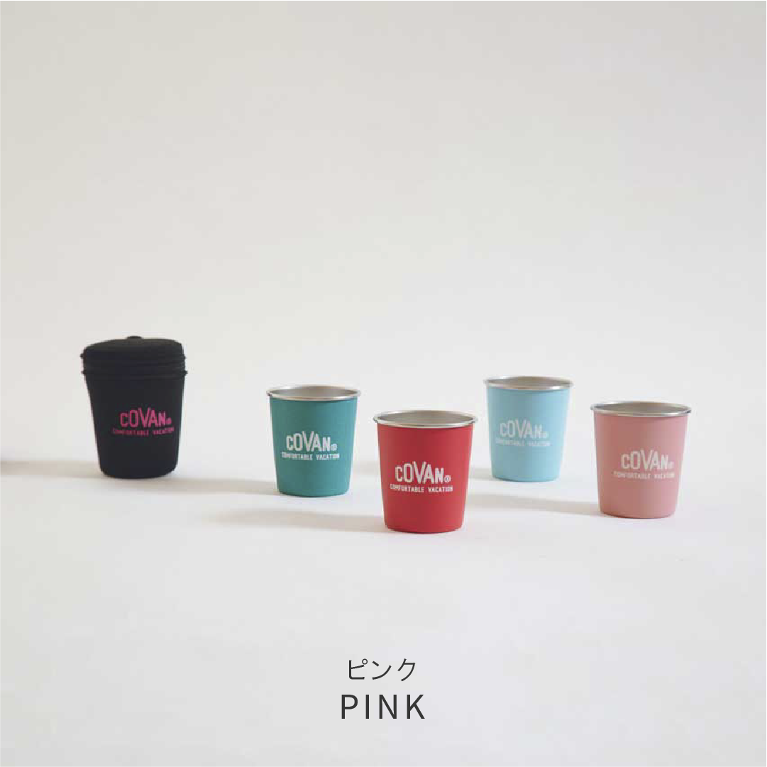 18-8ステンレス製のスタッキングカップです。携行に便利なクッション性のある専用ポーチ付きです。アースカラー(カーキ)とポップカラー(ピンク)の2トーン、4色セットです。
