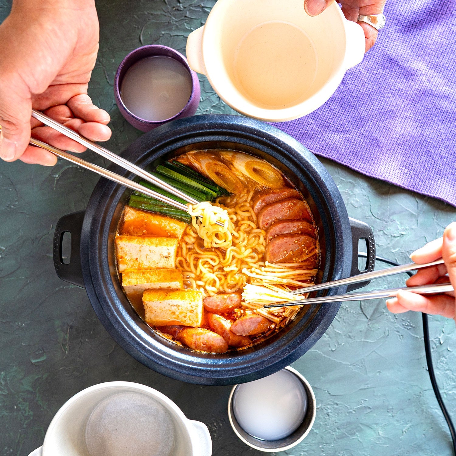 煮る、炊く、蒸す、温めるをボタン一つでできる超簡単な電気鍋です。台湾では一家に一台以上はあると言われる電気鍋は一度使えば手放せなくなるほど魅力がいっぱい。VOLTON は軽量コンパクト、スイッチ一つだけで直感的に使えるシンプルデザインで日本の新定番を目指します。