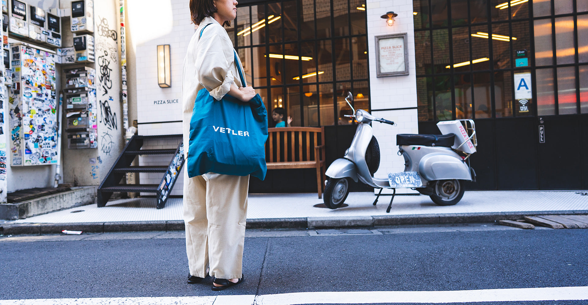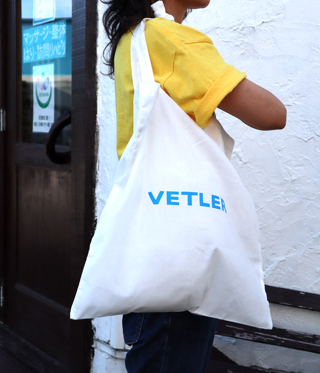 約55gの薄くて軽いトートタイプのエコバッグです。小さく折り畳んで常に常備しておきたいアイテムです。シンプルなプリントロゴは本体との色合わせがPOPな雰囲気で普段使いとしても最適です。
