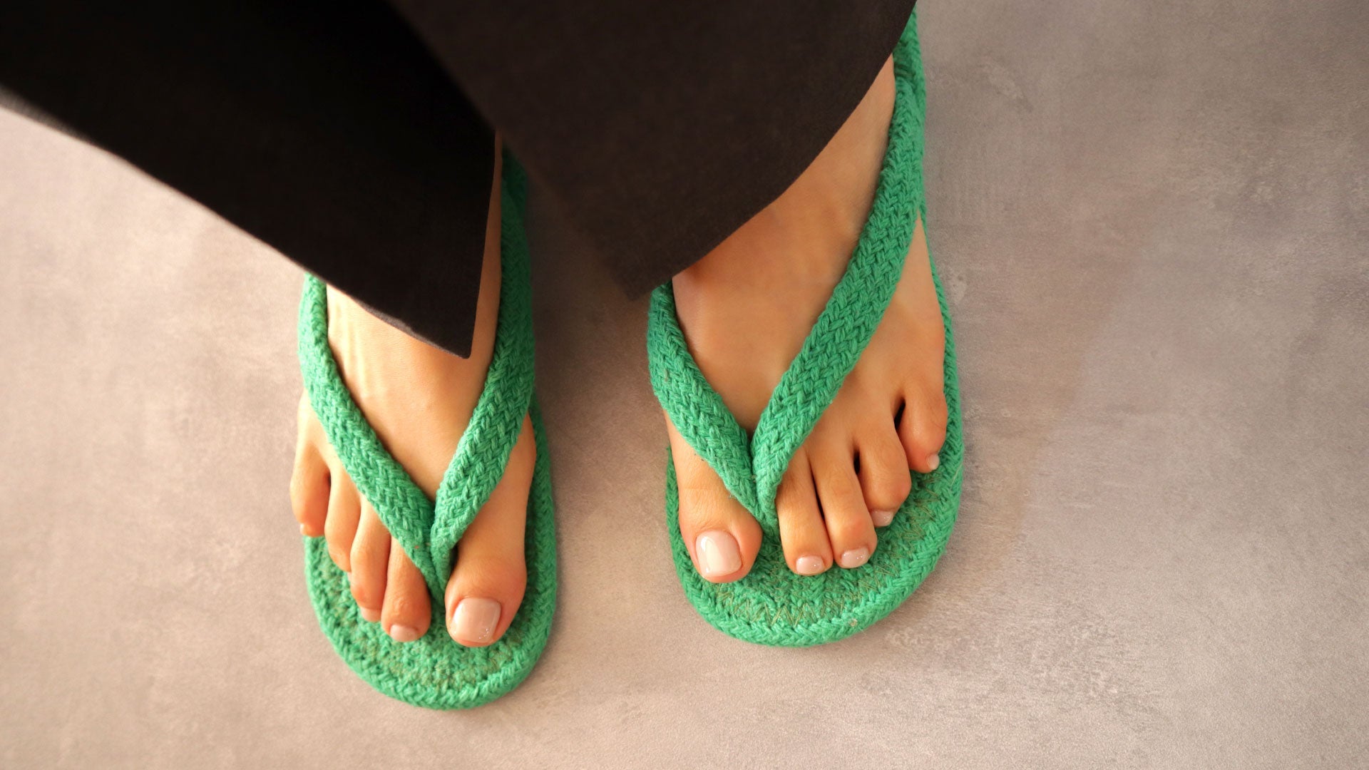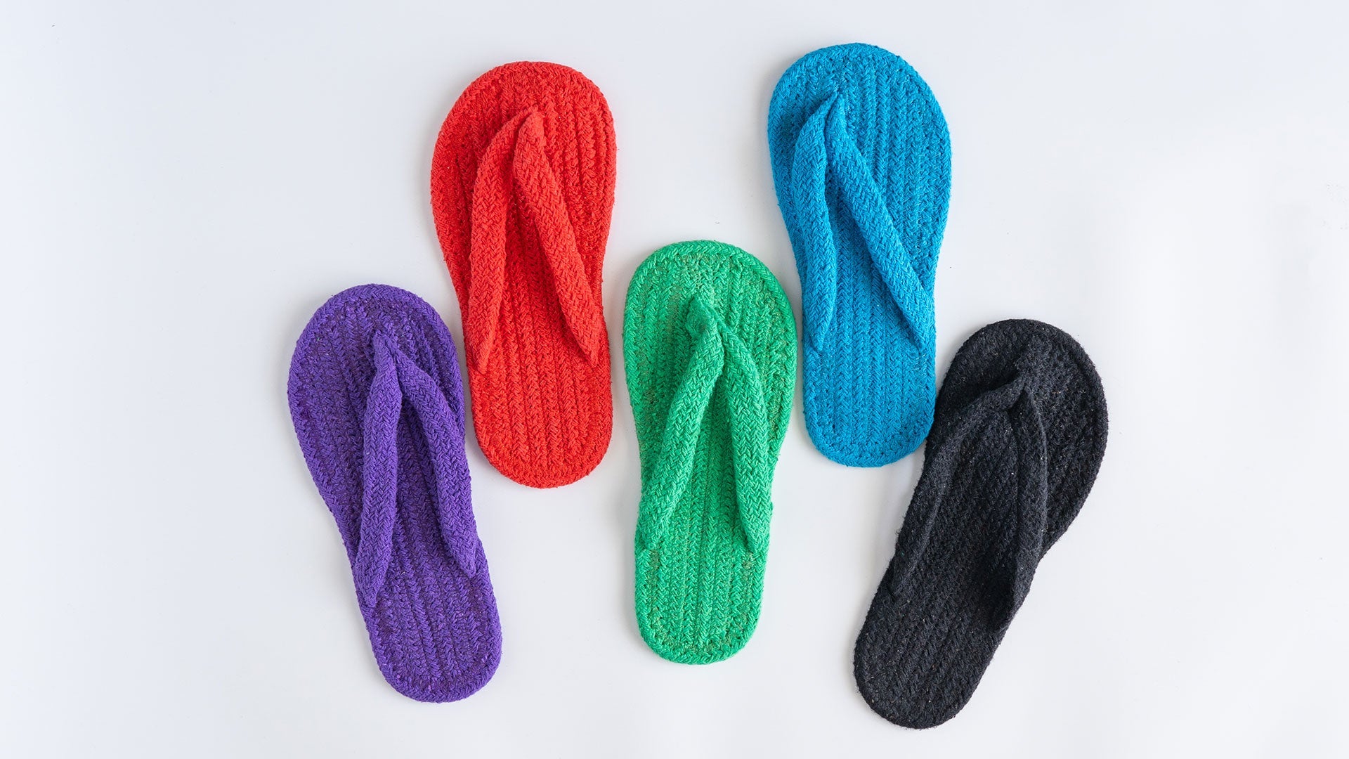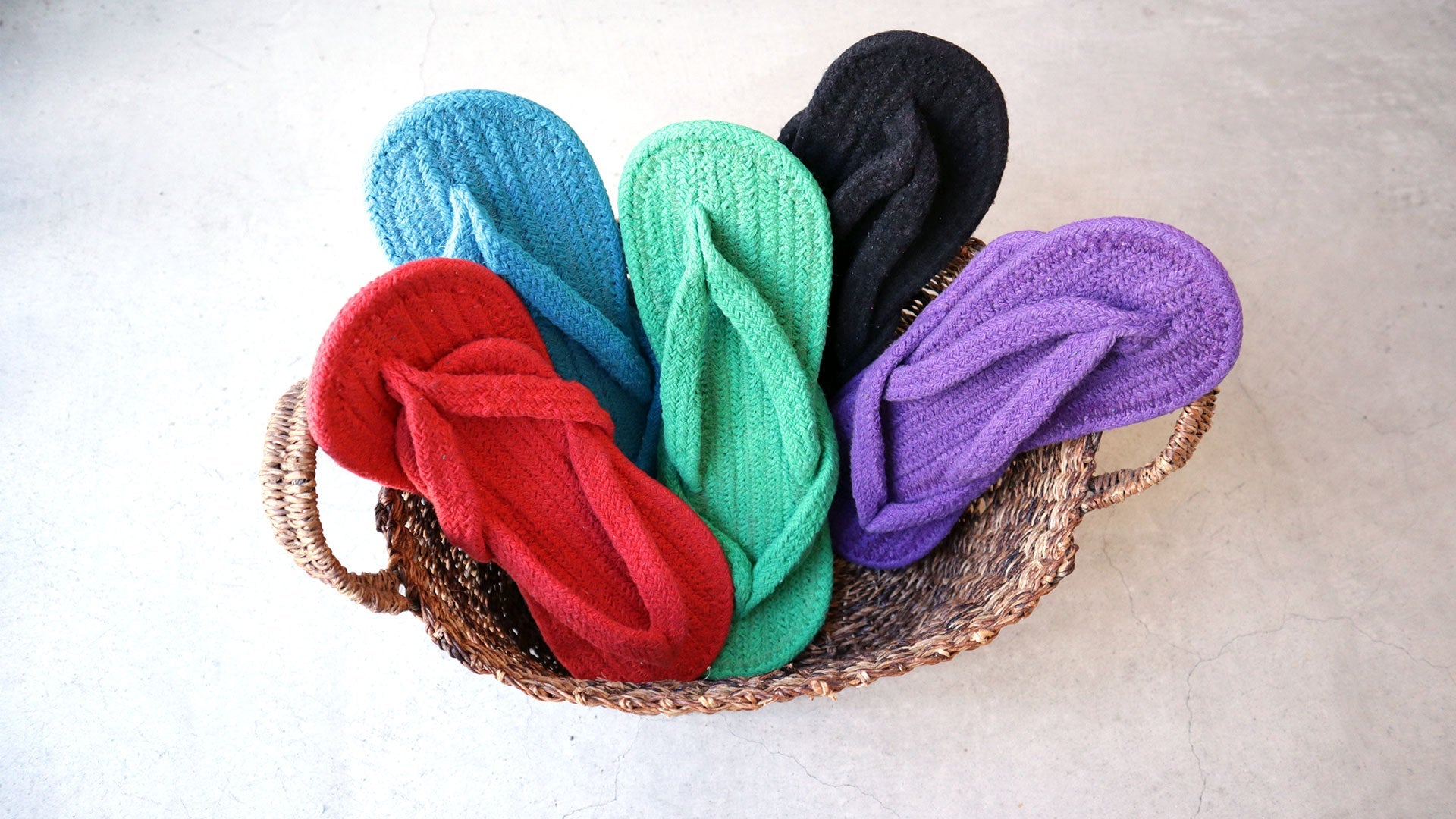 さらっとした肌触りで、履くのが気持ちいいインド綿コットンスリッパです。サラッとしたソフトな肌触りが特徴的なインド綿を使用したルームサンダルはインドの工場で一つ一つ丁寧に作られています。コットン素材なので丸洗いして長くお使いいただけます。