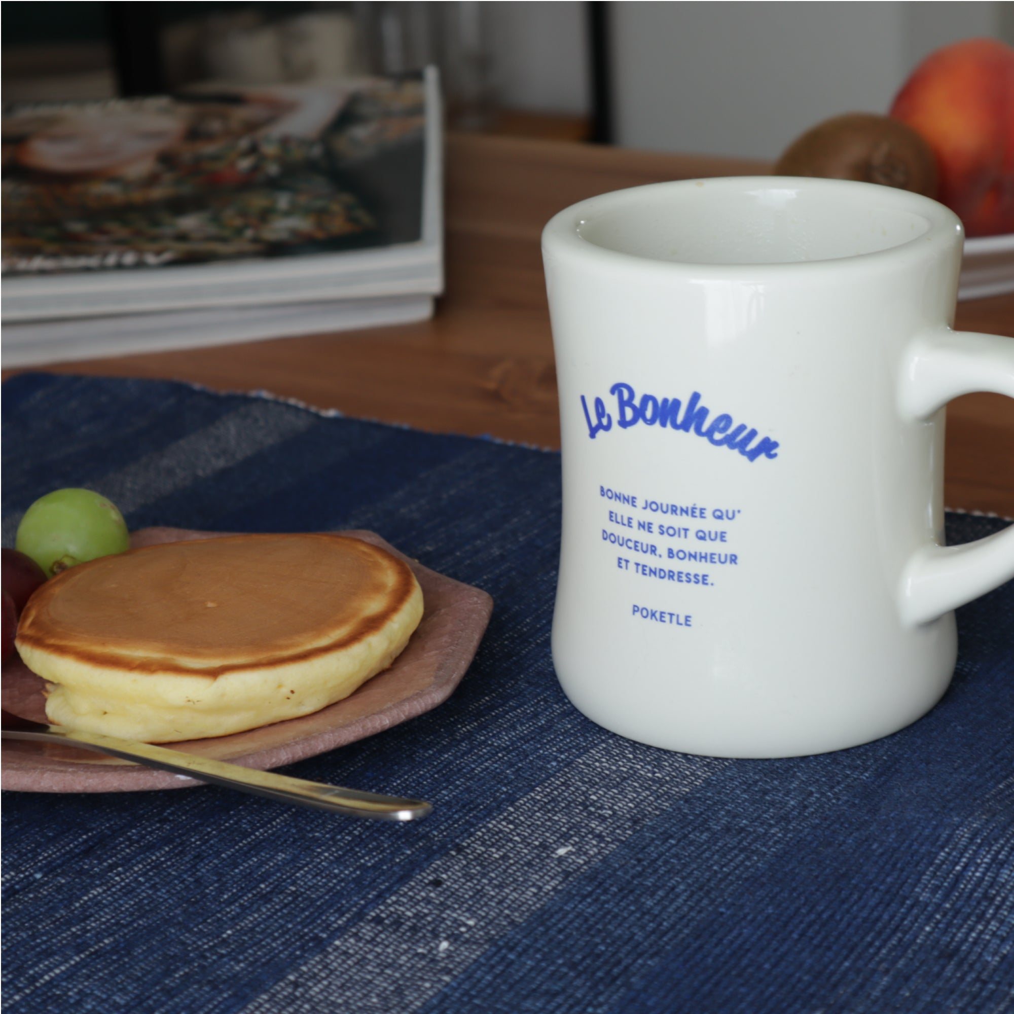 POKETLEのセラミック製ダイナーマグ。厚みのある口元が飲み物を包みこんで、ほっこりと熱が伝わってゆく優しさとずっしりとした安定感が心地よさを感じさせます。オリジナル化粧箱つきでギフトにも最適です。お菓子とセットのギフトセットに。