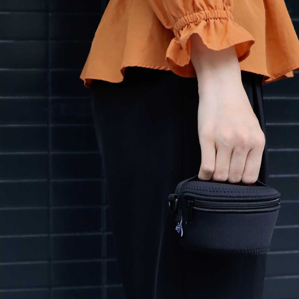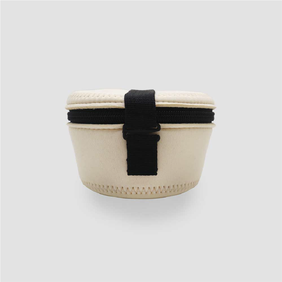 POKETLE carry cool 200専用のポーチです。シンプルなハンドルテープ付きで持ち運びにも便利です。カバーを付けると3時間で約5℃保冷効果が向上します。ブラックとアイボリーの2色からお選びいただけます。