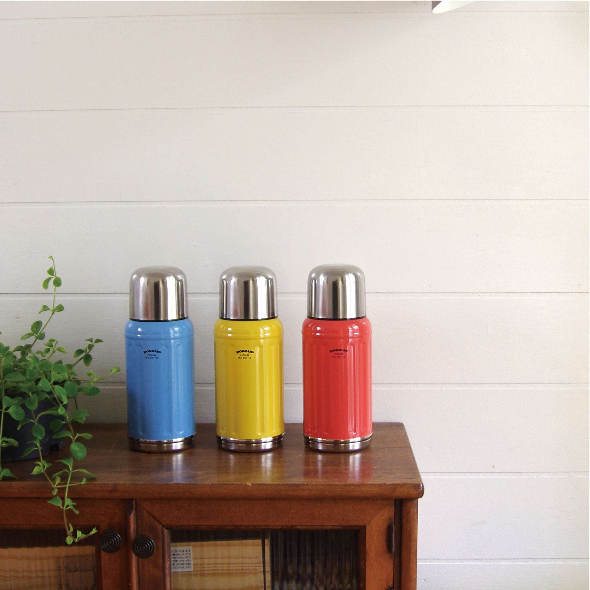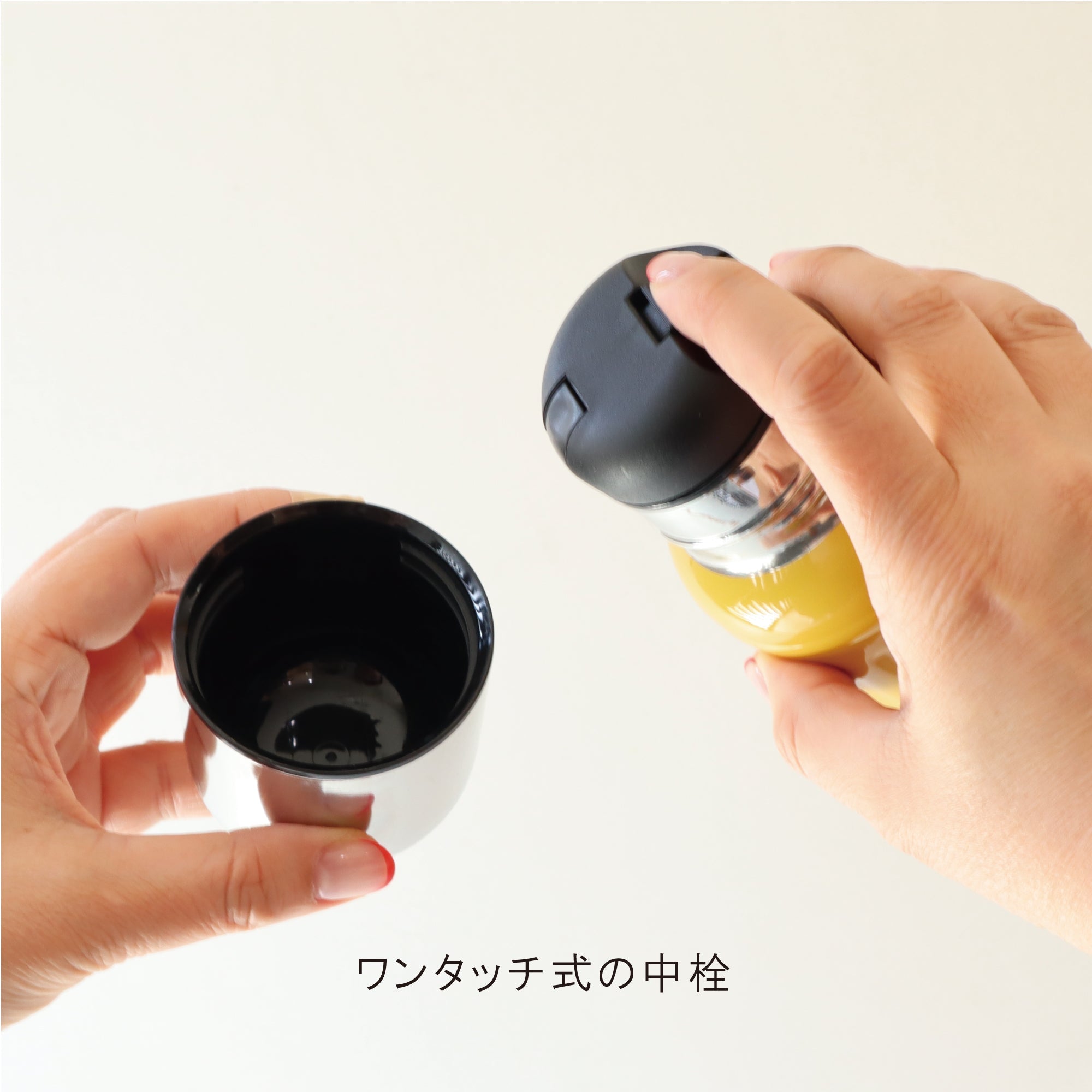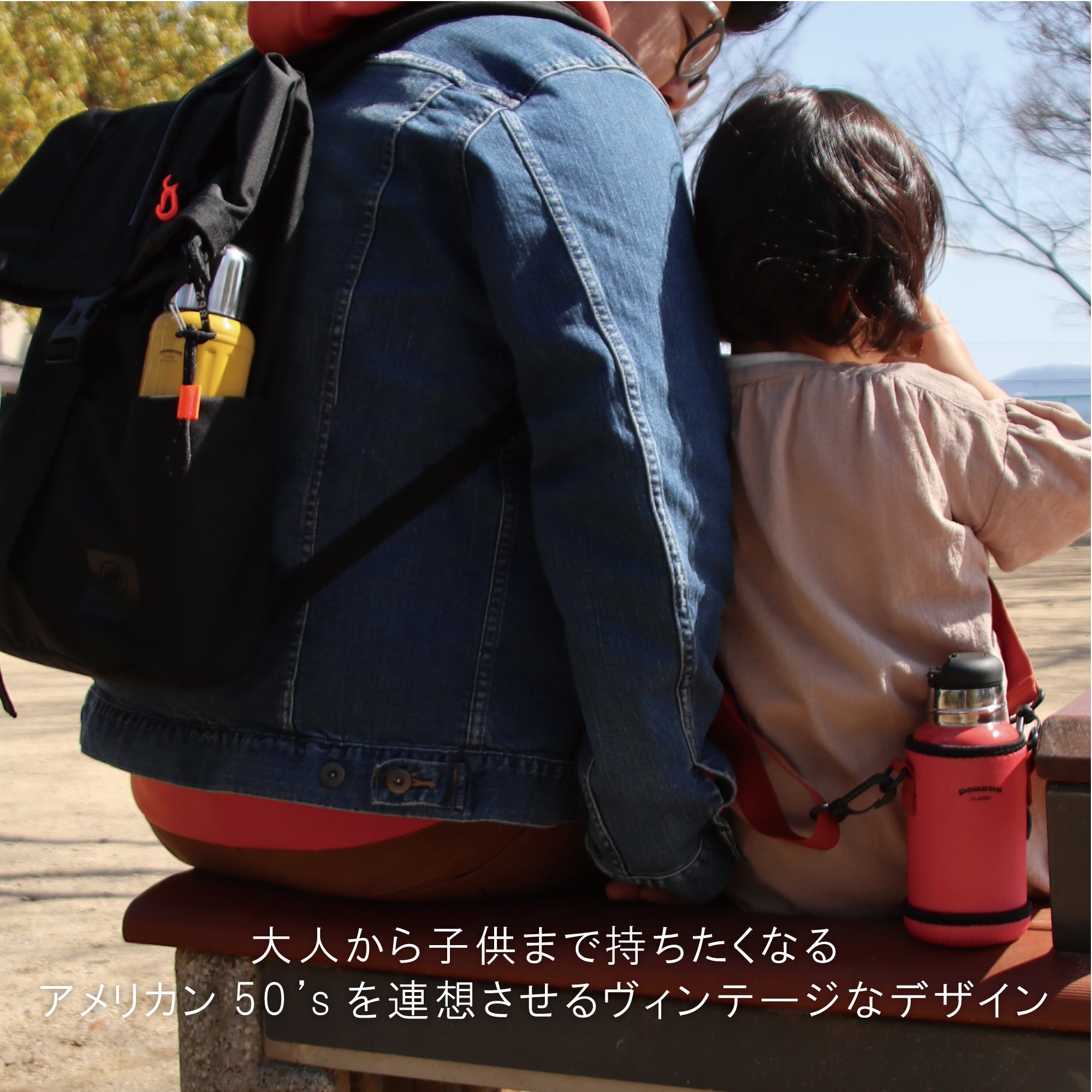 アメリカン50’s なビンテージデザイン、大人から4 歳くらい~小学校低学年までのお子様にも、おすすめの350ml サイズ。ワンタッチで開く中栓からの「直飲み」とフタにそそぐ「コップ飲み」どちらでも使えるから、ゴクゴク飲みたいときの水分補給や温かい飲み物をゆっくり飲みたいときなど、シーンを選ばずお使いいただけます。また背面プッシュですっきりした飲み口です。