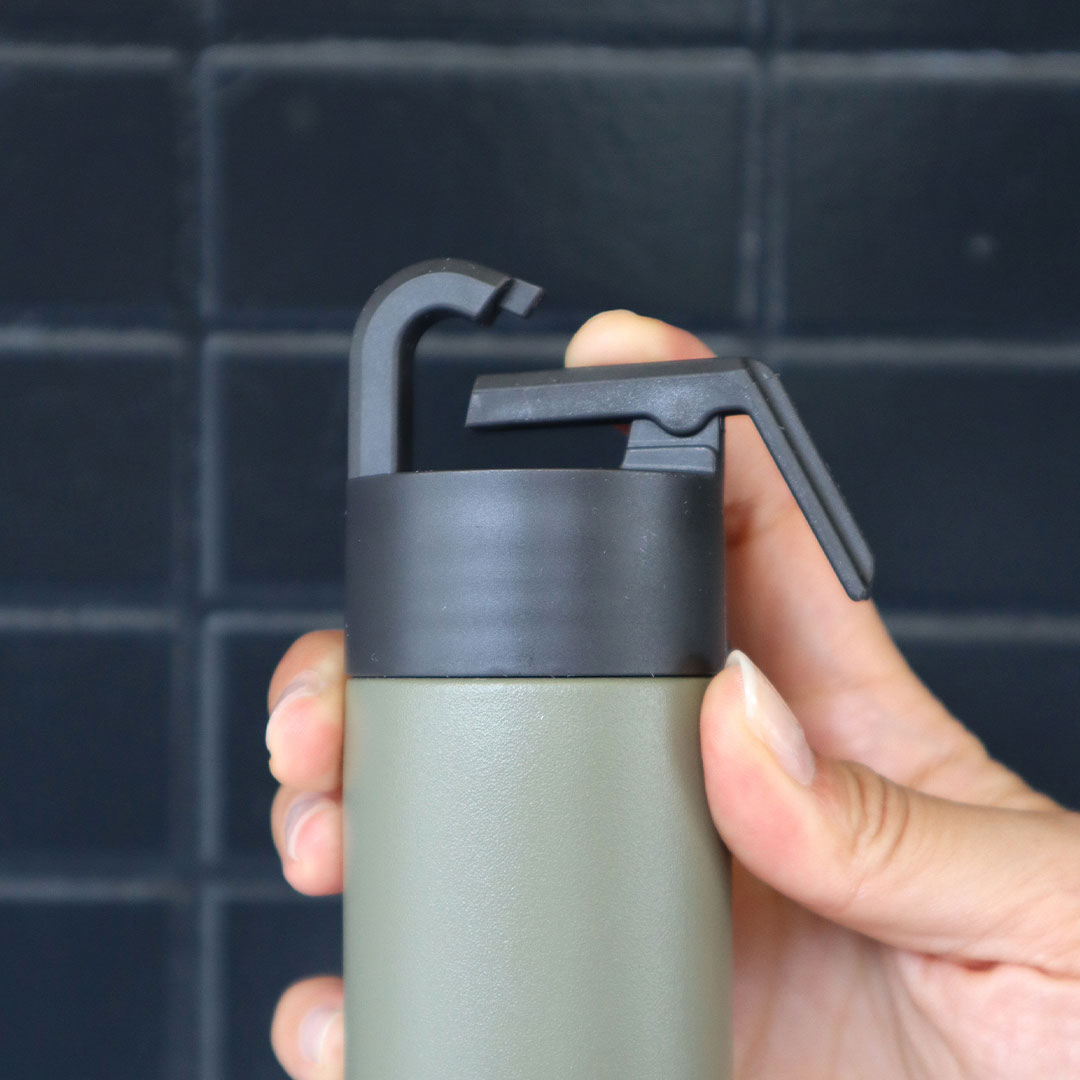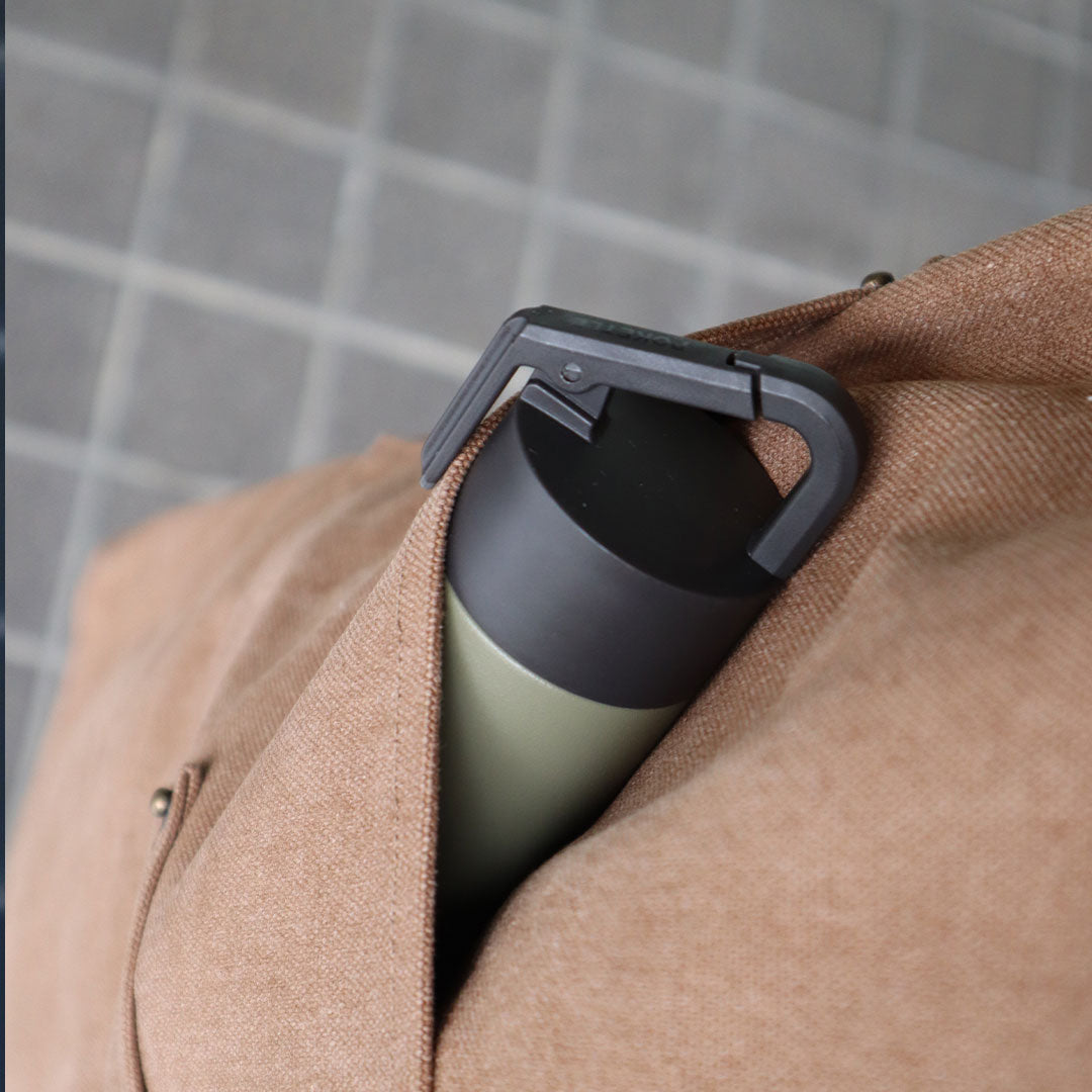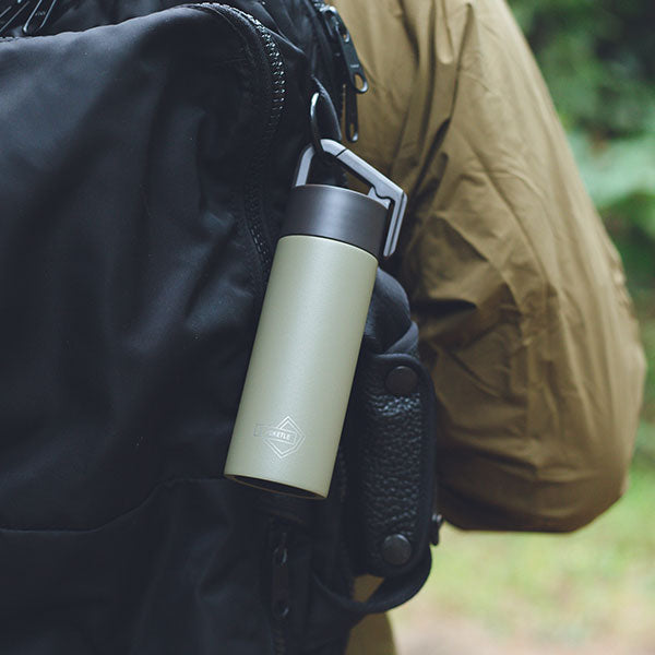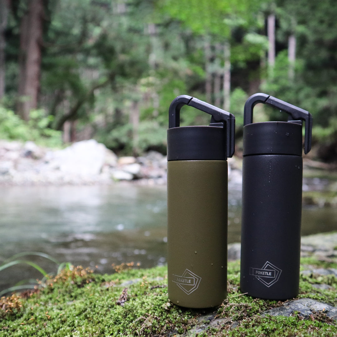 POKETLE 120 HANG よりアクティブなシーンとの親和性を高めたニューモデル。POKETLE HANGは「よりアクティブに」をコンセプトとして生まれたPOKETLE®シリーズのニューモデルです。POKETLEのフタにスタイリッシュなカラビナ構造を付加することで実現しました。今までのPOKETLEと同じく、容量は120mLと180mL、色はアウトドアでも違和感のないアースカラー3色からお選びいただけます。