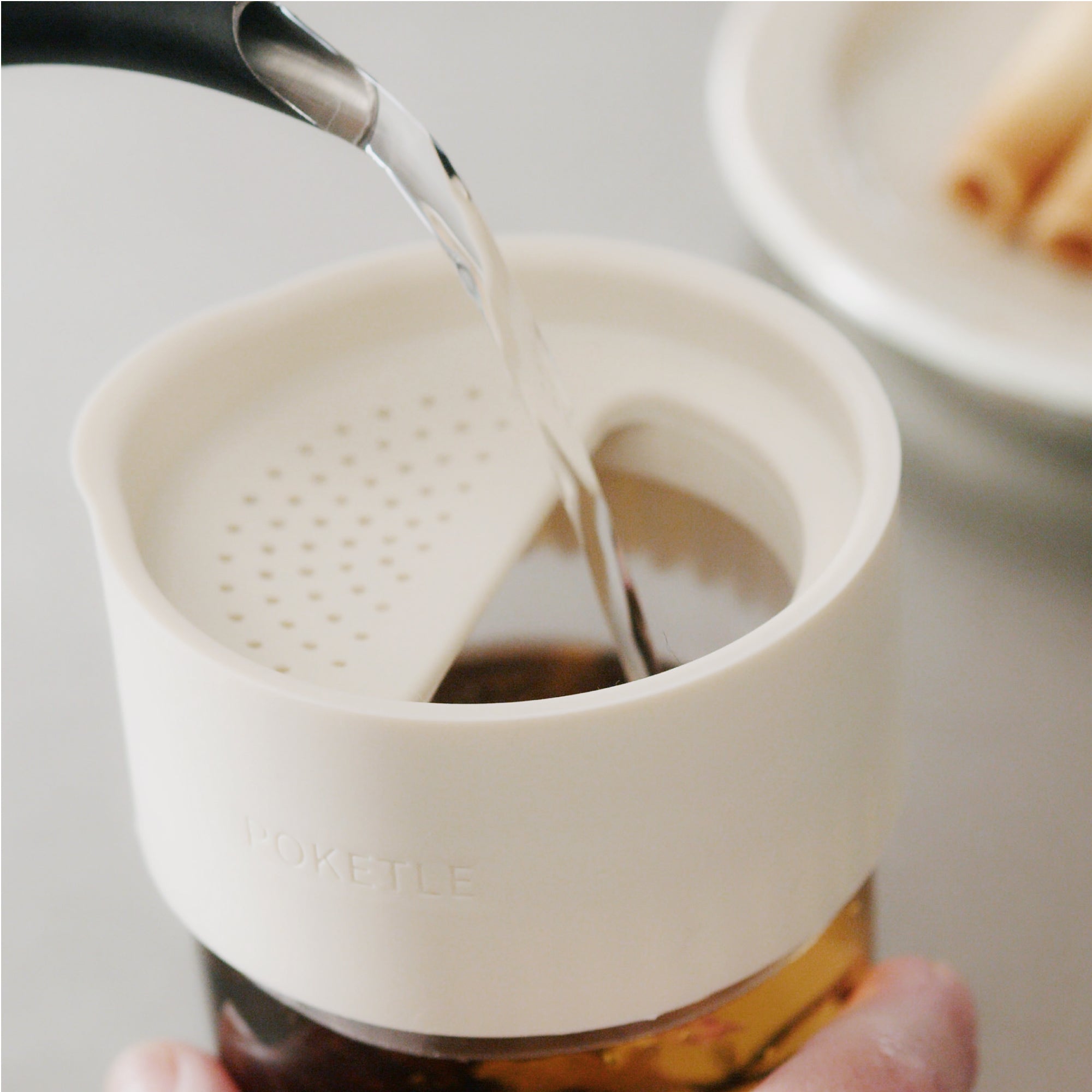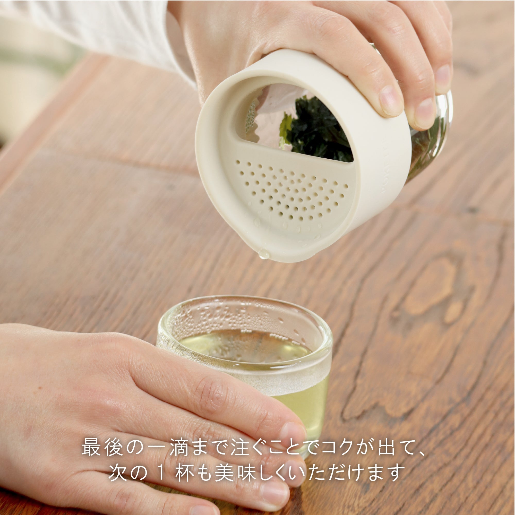 ポケトルの提案する”きゅうすのイマ” ガラス製きゅうすです。場所を取らない、ミニマルなカタチで、お茶を淹れる一つ一つの工程を見て楽しめるガラスデザインです。お茶に欠かせない「最後の一滴」にもこだわりました。早起きした朝のひと息に。デスクワークのお供に。