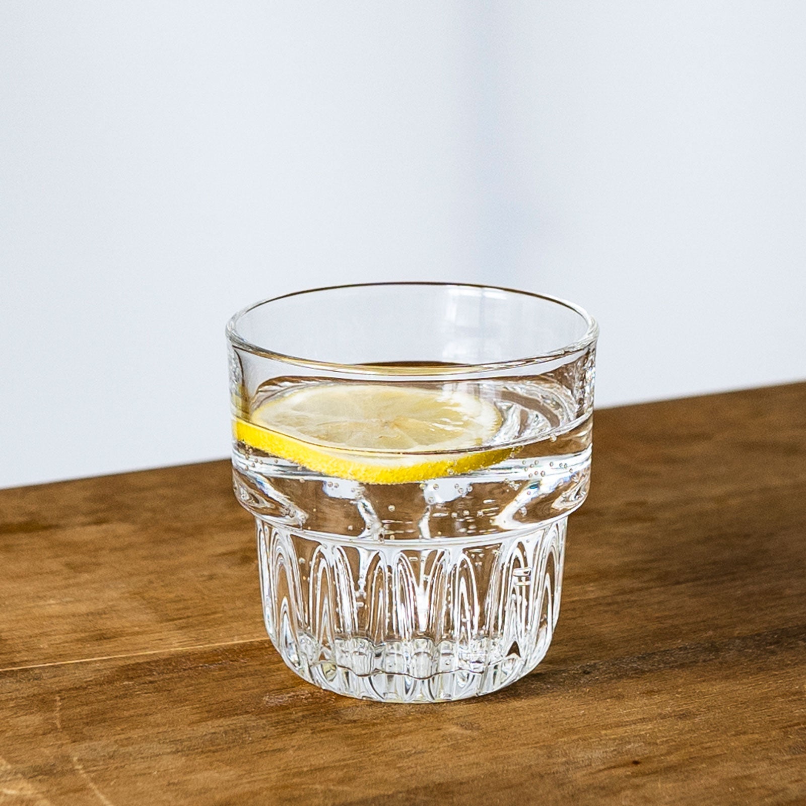 どこか懐かしい、積み重ねて収納が可能なスタッキンググラスです。下部の凹凸が美しい、レトロな形状のスタッキンググラスは、重ね収納が可能で、家族分揃えても省スペース。ロックグラスとしてはもちろん、来客時のお茶、カクテルやデザートグラスとしてもお使いいただけます。