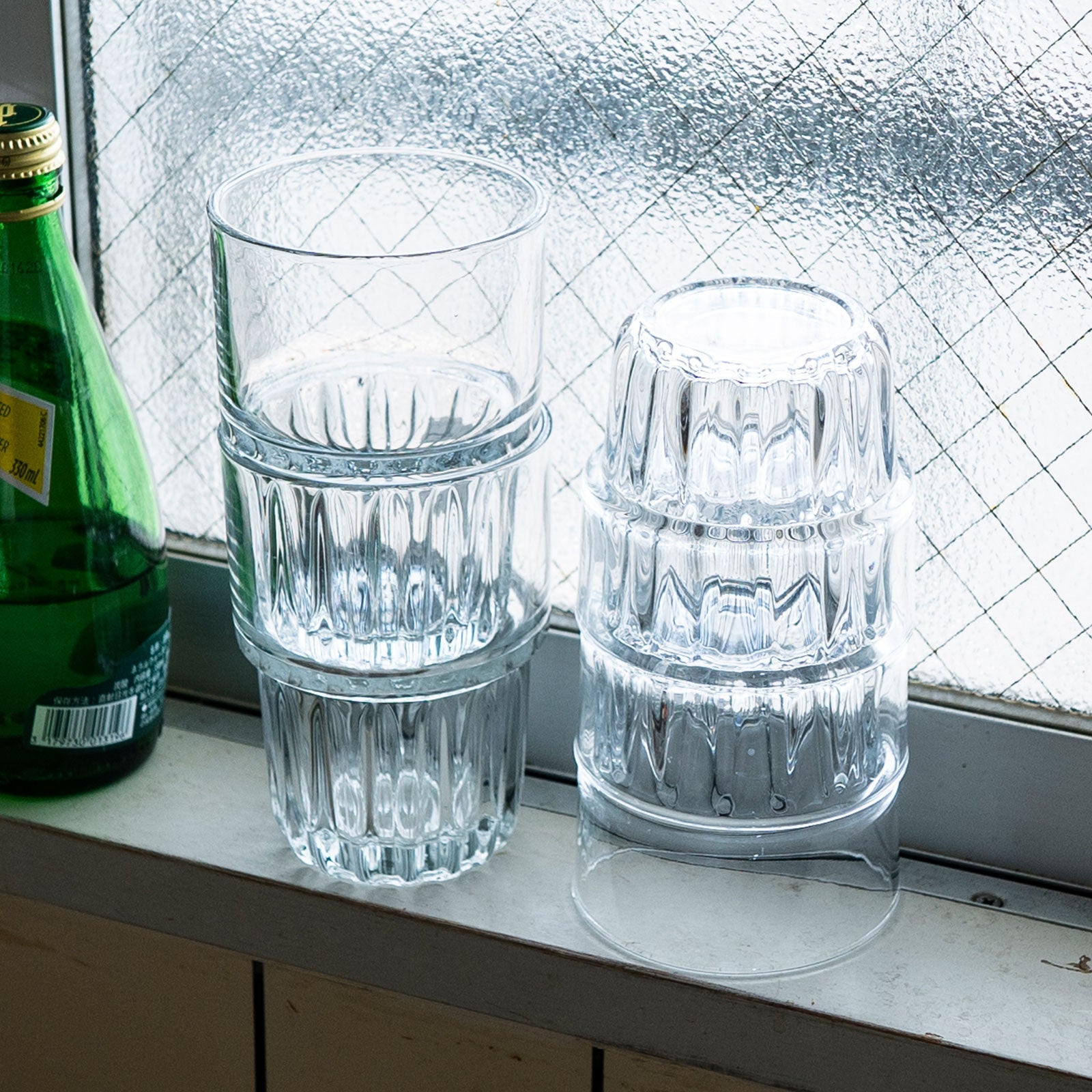 どこか懐かしい、積み重ねて収納が可能なスタッキンググラスです。下部の凹凸が美しい、レトロな形状のスタッキンググラスは、重ね収納が可能で、家族分揃えても省スペース。ロックグラスとしてはもちろん、来客時のお茶、カクテルやデザートグラスとしてもお使いいただけます。
