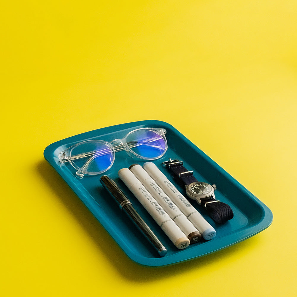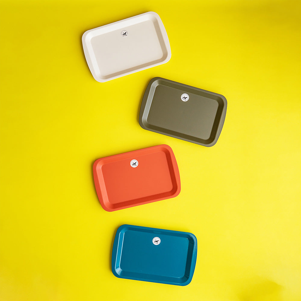 コーヒーとパンなど軽い食事用としてちょうどいいサイズのカフェトレーです。部屋や玄関でアクセサリーや鍵を置くトレーとして、またデスクで使うペントレーとしても使いやすいサイズです。