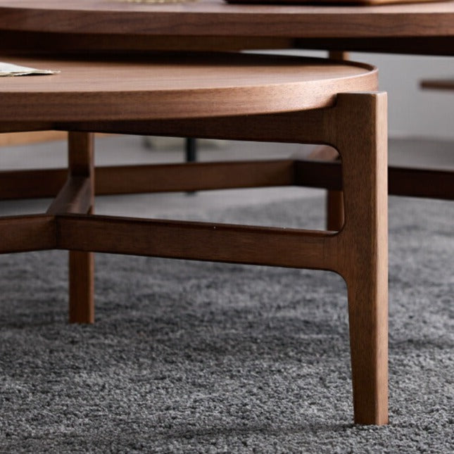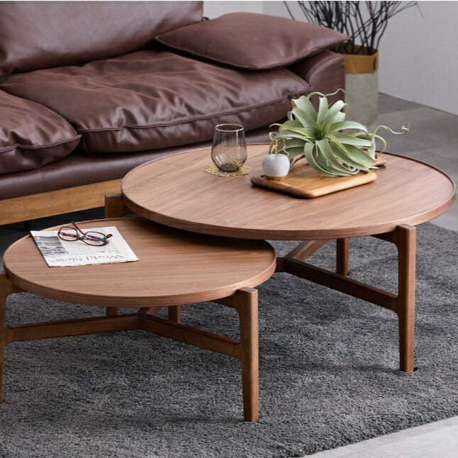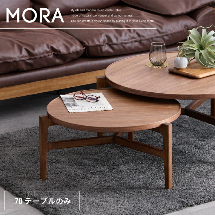 天然木突板のおしゃれな丸形センターテーブルです。円型フォルムが圧迫感なくリビングに優しく馴染むローテーブルです。フローリング床や畳にも調和する、上品な質感が魅力です。