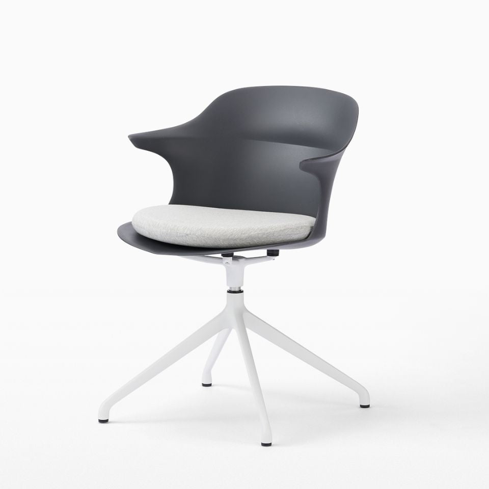 快適な座り心地とサポート力「Smooth Round Chair」は、座る人を包み込むように設計された座面が最大の特徴です。ジャストフィットするシートクッションはモールドウレタン製で適度な反発とクッション性、へたりにくい耐久性があります。シートクッションと合わせて使用することで、長時間座っても疲れにくく、腰や背中への負担を軽減し、デスクワークや読書、リラックスタイムなど、さまざまなシーンで快適に過ごすことができます。スタイリッシュなデザインシンプルかつ上品で柔らかなフォルムは、どんなインテリアにも合わせやすく、お部屋の雰囲気をおしゃれに引き立てます。本体カラーやクッション、脚部のカラーを選べるため、あなた好みのカスタマイズが楽しめます。機能性360度回転式の座面を採用しており、チェアを後ろに引く必要がなく身体を回転させるだけで、省スペースでスムーズに出入りが可能です。軽量で耐久性のある樹脂素材を使用しているため、取り扱いが容易で、長期間ご使用いただけます。