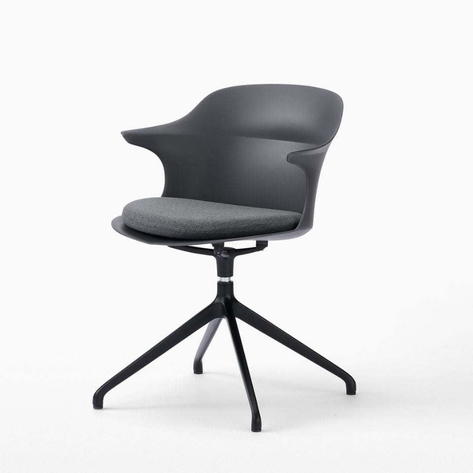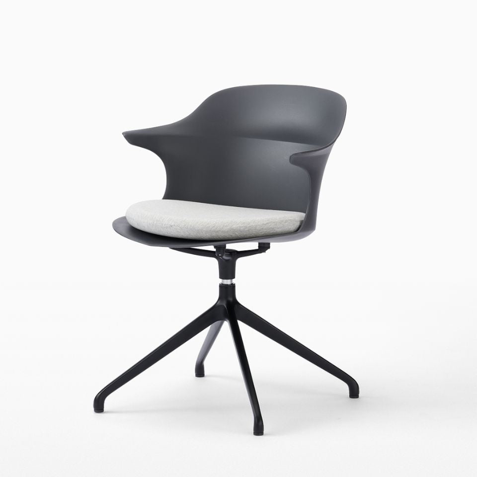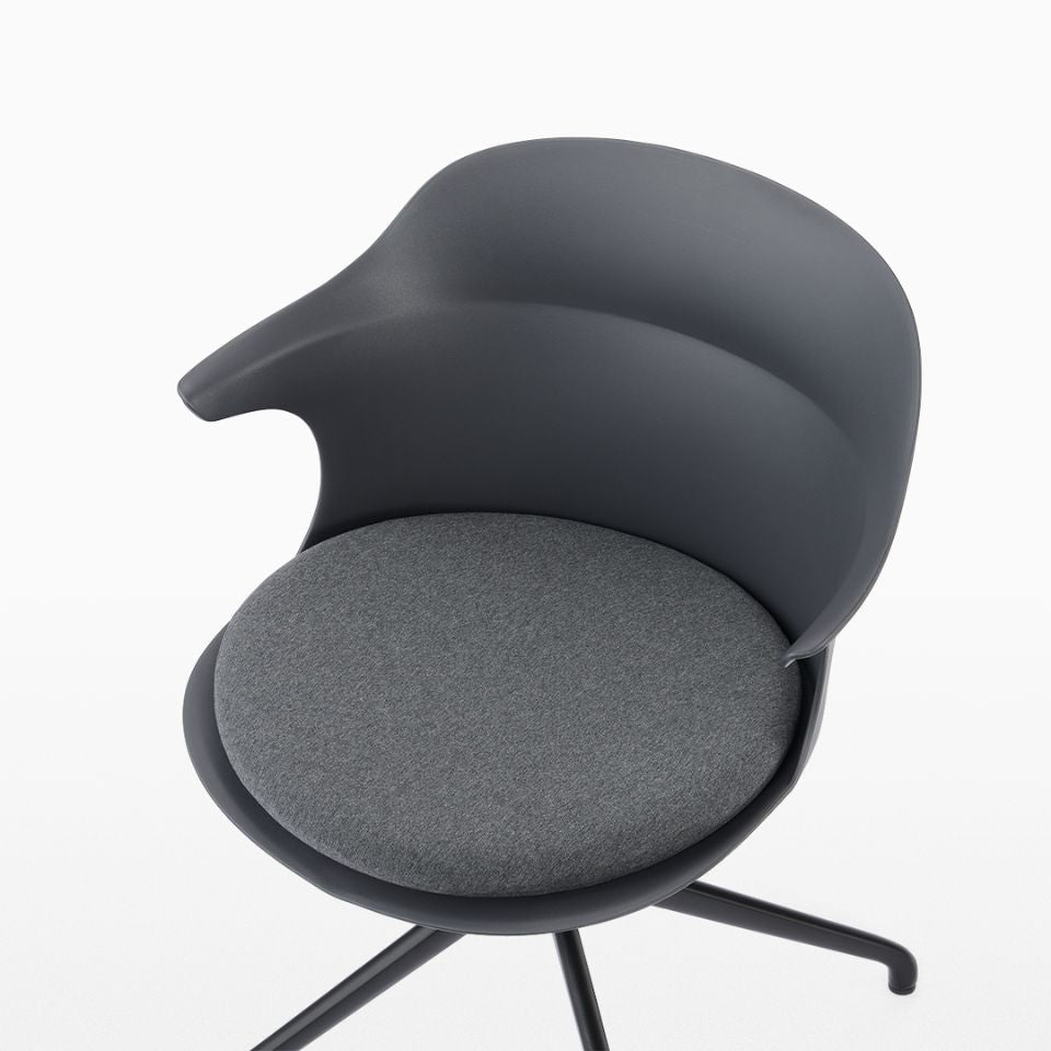 快適な座り心地とサポート力「Smooth Round Chair」は、座る人を包み込むように設計された座面が最大の特徴です。ジャストフィットするシートクッションはモールドウレタン製で適度な反発とクッション性、へたりにくい耐久性があります。シートクッションと合わせて使用することで、長時間座っても疲れにくく、腰や背中への負担を軽減し、デスクワークや読書、リラックスタイムなど、さまざまなシーンで快適に過ごすことができます。スタイリッシュなデザインシンプルかつ上品で柔らかなフォルムは、どんなインテリアにも合わせやすく、お部屋の雰囲気をおしゃれに引き立てます。本体カラーやクッション、脚部のカラーを選べるため、あなた好みのカスタマイズが楽しめます。機能性360度回転式の座面を採用しており、チェアを後ろに引く必要がなく身体を回転させるだけで、省スペースでスムーズに出入りが可能です。軽量で耐久性のある樹脂素材を使用しているため、取り扱いが容易で、長期間ご使用いただけます。