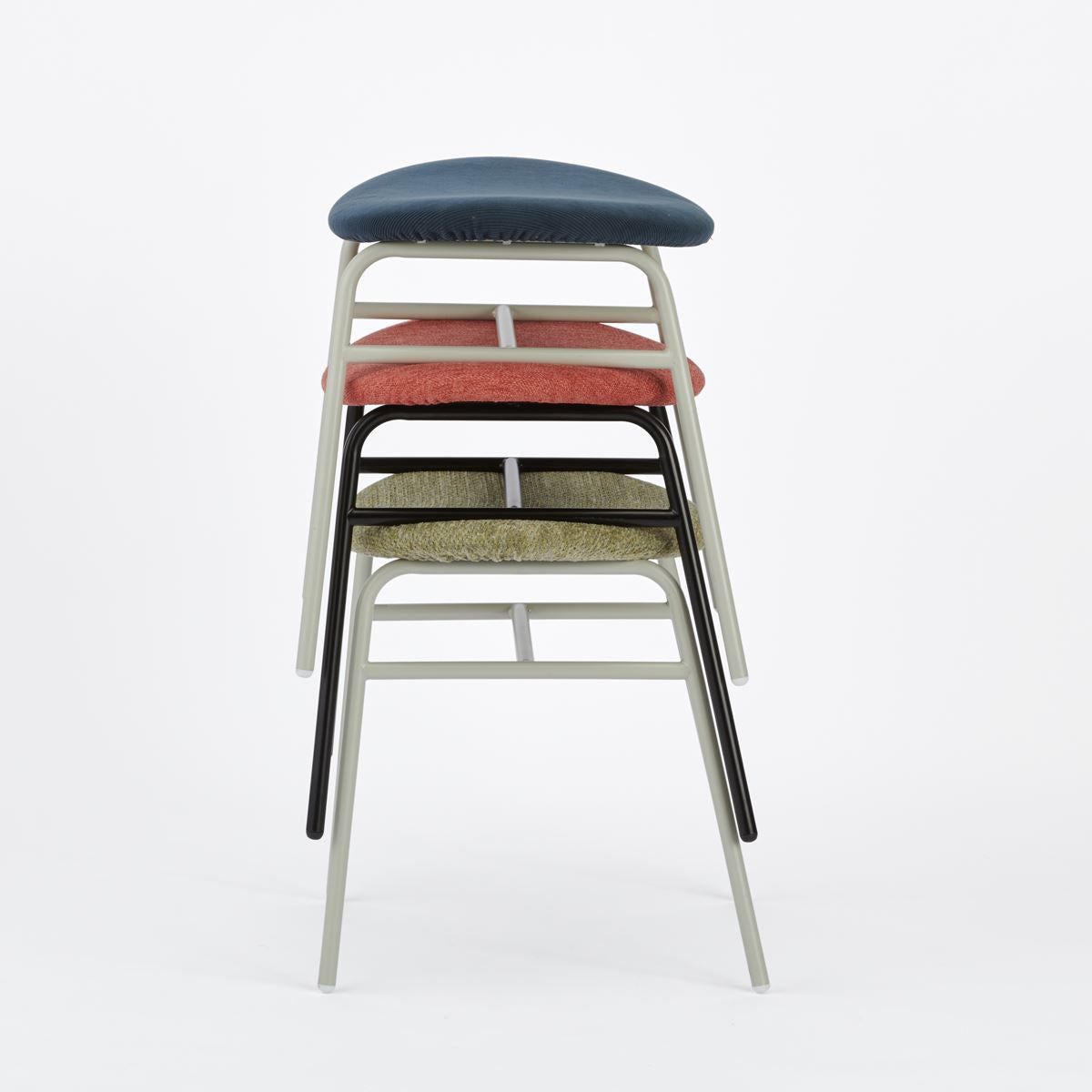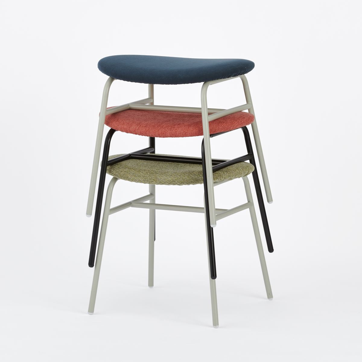 豊富な素材とカラーのバリエーションが楽しめるKUUM Chairと同じ座面のシリーズで、クッション座面タイプのスツールです。ドライクリーニング可能なカバーが8色から選べ、被せるだけなので簡単に交換ができます。座面は合皮を張っているので、カバーを外した状態でもご使用いただけます。ゆったりと座れる広めの座面が特徴のkinoco。姿勢をくずしてもくつろいで座れます。同じデザインのKUUM Chairと合わせてお使いいただくと、相性も良く、リズムあるインテリアになるのでお勧めです。脚は軽やかさと安定感を感じられる、アイアン風の鉄パイプを使用。座面の色と組み合わせることで、お好みのテイストに合わせても馴染んでお使いいただけます。スタッキングも可能なので、複数台あっても省スペースで収納ができ、来客用としてもさっと出して気軽にお使いいただけます。