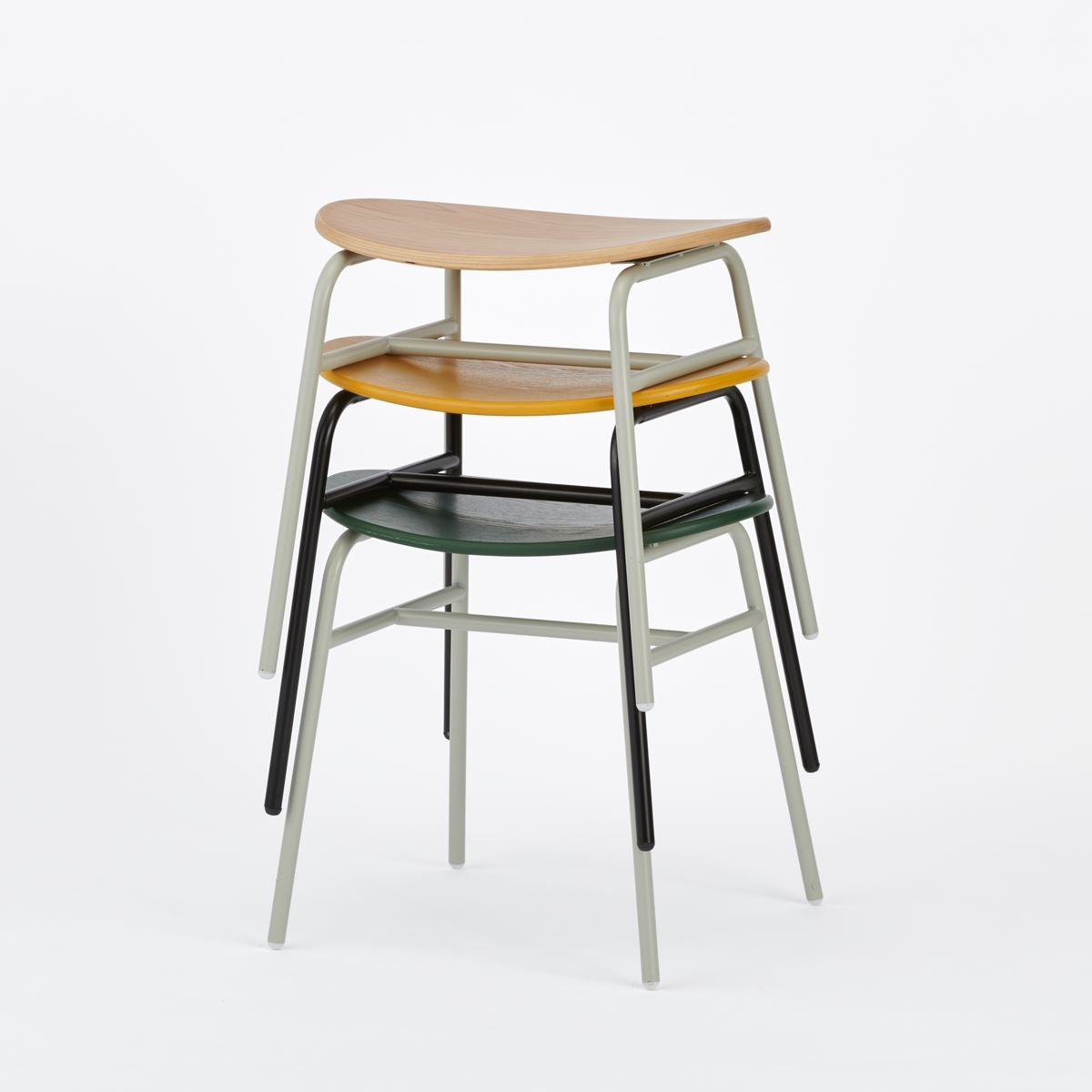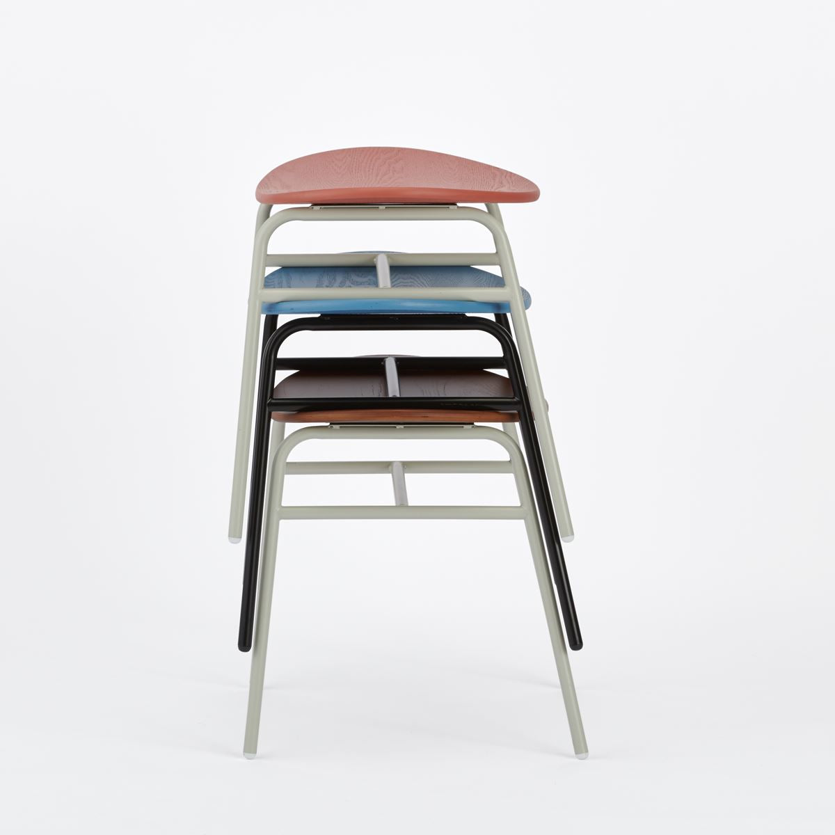 豊富な素材とカラーのバリエーションが楽しめるKUUM Chairと同じ座面のシリーズで、座り心地にこだわったスツールです。仕上げも単純な塗り潰しでは無く、木目の凹凸を残した塗装をしているので、木目の風合いも楽しめる仕上げにしています。ゆったりと座れる広めの座面が特徴のkinoco。姿勢をくずしてもくつろいで座れます。同じデザインのKUUM Chairと合わせてお使いいただくと、相性も良く、リズムあるインテリアになるのでお勧めです。脚は軽やかさと安定感を感じられる、アイアン風の鉄パイプを使用。座面の色と組み合わせることで、お好みのテイストに合わせても馴染んでお使いいただけます。スタッキングも可能なので、複数台あっても省スペースで収納ができ、来客用としてもさっと出して気軽にお使いいただけます。