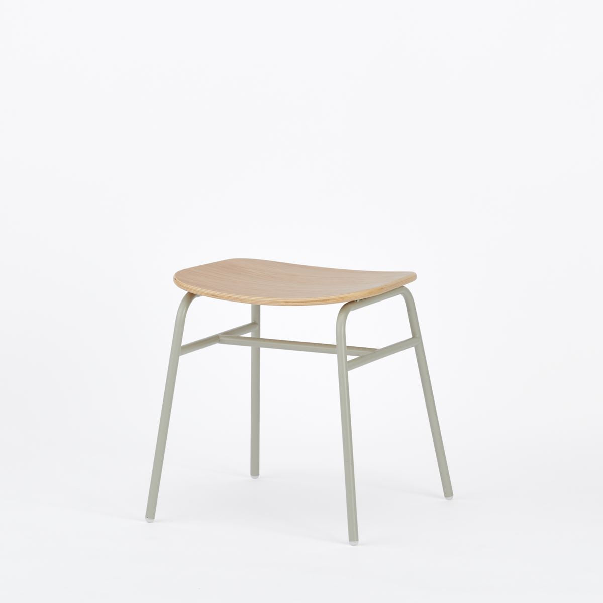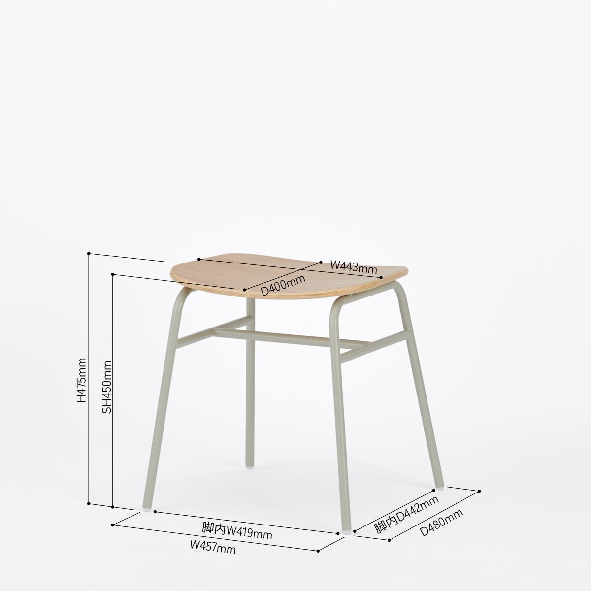 豊富な素材とカラーのバリエーションが楽しめるKUUM Chairと同じ座面のシリーズで、木目が際立つような仕上げと座り心地にこだわったスツールです。シンプルな形状なので、どんなシーンにも合わせやすいshikaku。ちょうど良いサイズ感の座面が心地良く座れます。同じデザインのKUUM Chairと合わせてお使いいただくと、相性も良く、リズムあるインテリアになるのでお勧めです。脚は軽やかさと安定感を感じられる、アイアン風の鉄パイプを使用。座面の色と組み合わせることで、お好みのテイストに合わせても馴染んでお使いいただけます。スタッキングも可能なので、複数台あっても省スペースで収納ができ、来客用としてもさっと出して気軽にお使いいただけます。