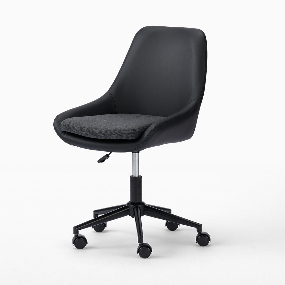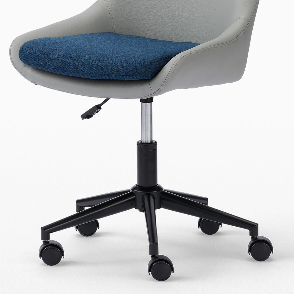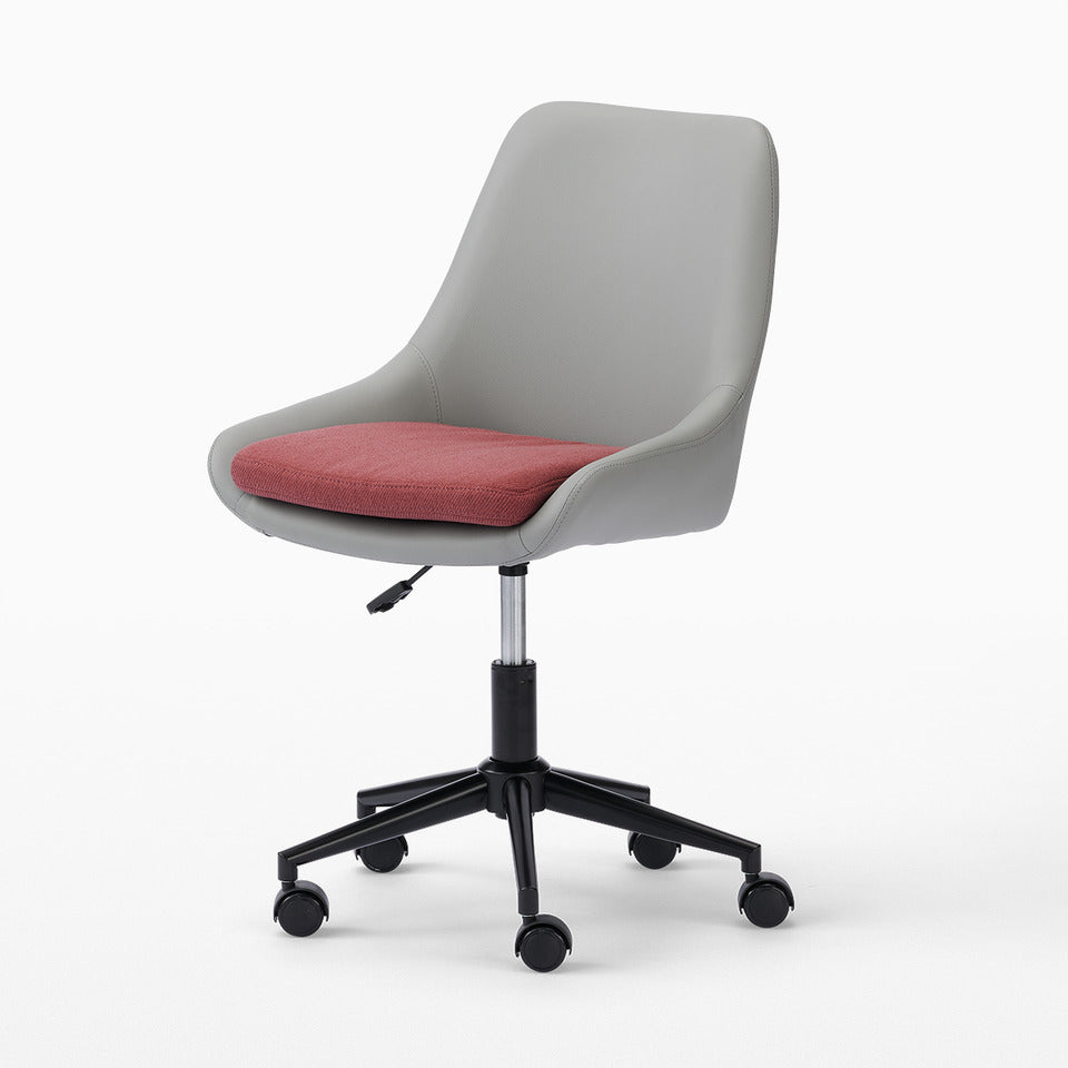 シンプルデザインミニマルな形状と洗練されたデザインでどんなインテリアにも自然に溶け込むキャスター付き昇降式ラウンドチェアです。シンプルでありながらモダンなフォルムは、オフィスや家庭などの様々な場所でも使い勝手がよく柔軟に対応します。回転式の座面で、テーブルの出入りがスムーズにできます。また肘なしなのでテーブルに収まりやすい設計になっています。交換可能なチェアパッド座面のパッドは簡単に取り外して清掃や交換ができるため、常に清潔で快適な座り心地を保てます。季節や気分に合わせてパッドを変えることで、新しい座り心地を楽しんでいただけます。パッドを長期間使用した後でも、新しいパッドに交換することで、椅子全体を新品のようにリフレッシュすることができます。心地よさ体を包み込むようなフォルムは背中から腰にかけてしっかりとサポート。座面全体にウレタンフォームが入り、クッション素材が長時間の使用でも疲労感を軽減します。※ご注意以前に取り扱いしておりましたRound Desk chair(ラウンドデスクチェア)とは仕様が異なっております。そのため、本製品と並べてご使用いただいた場合に、カラーや外観に違いが生じます。予めご了承の上、お買い求めください。
