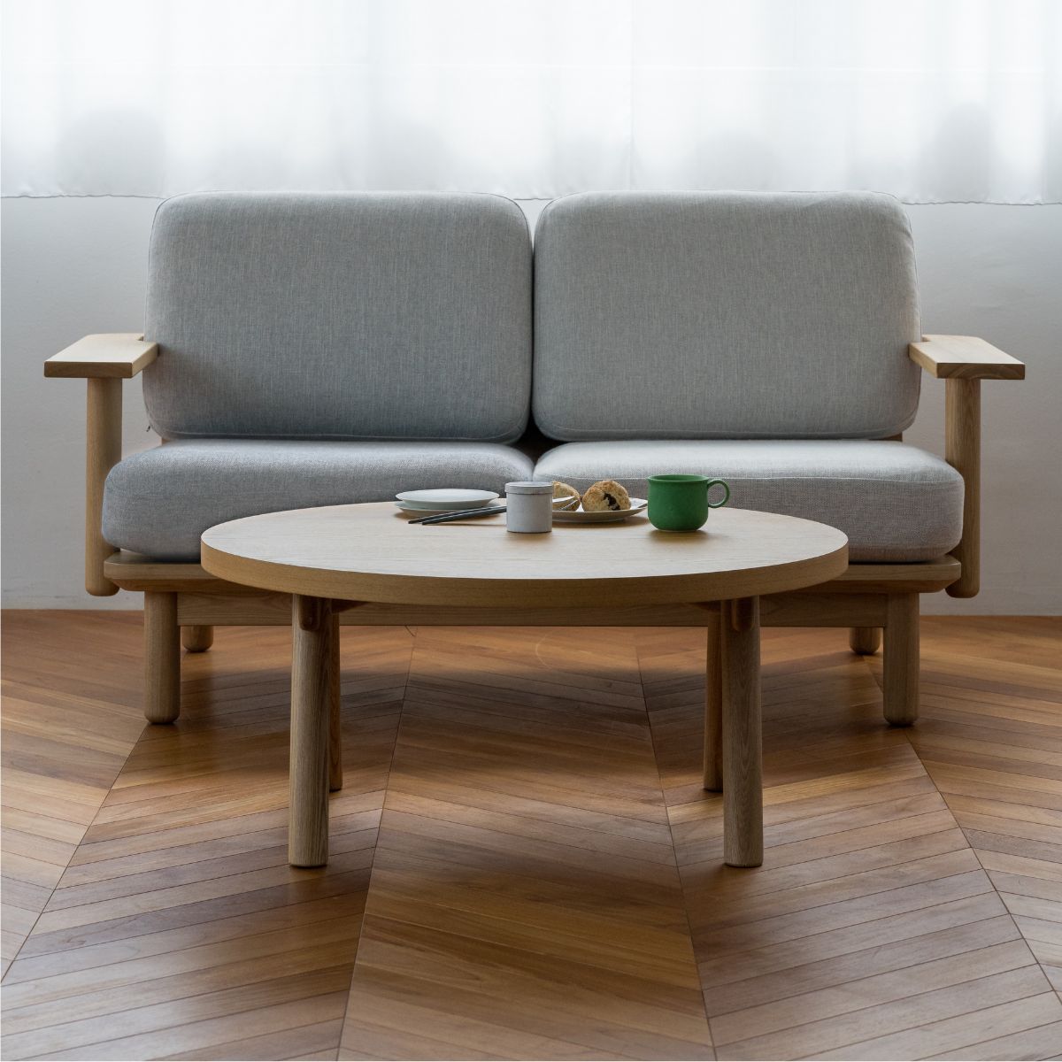 KUUM Living Table Φ850 突板 KUUM Sofa Wood 2P リビングソファ セットA(2点セット)