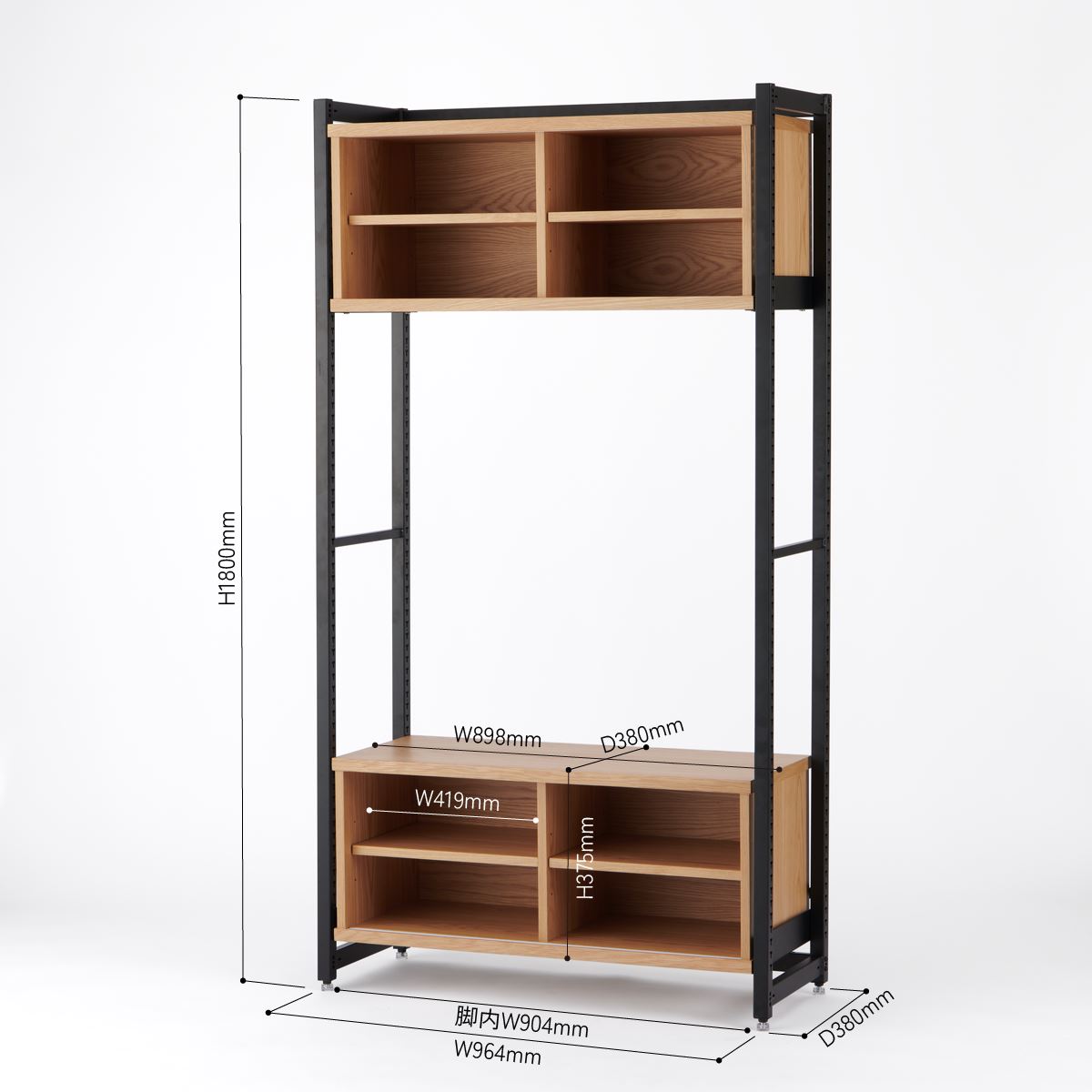 KUUM Shelf Black H1800 収納BOX2段 set クーム シェルフ