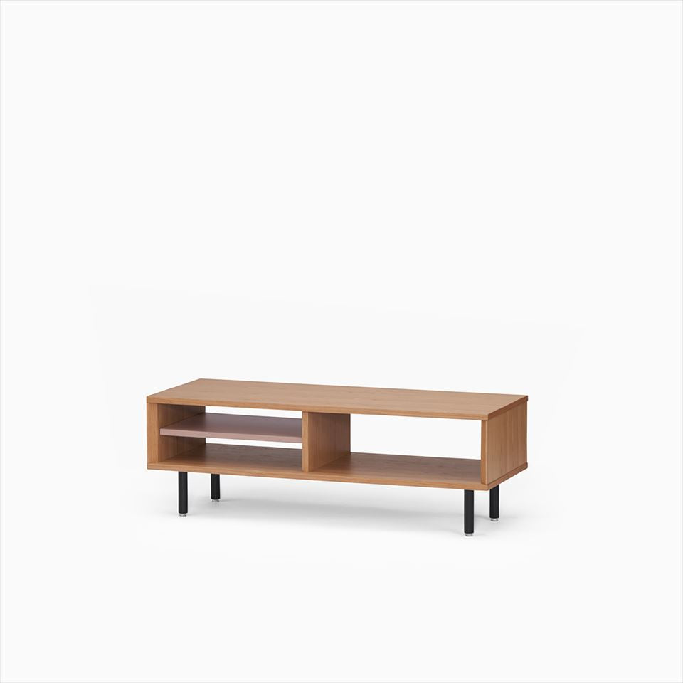 シンプルで合わせやすく、あなたのピッタリを選べるローボードシンプルでありながらも、木素材感を感じられるこのローボードは高級感のあるマット(艶消)塗装が施され、どんなインテリアにも合わせやすいデザインになっています。 ゆったりサイズ奥行サイズが45cmと50インチのテレビもゆったりと置くことができるようになっています。可動棚は3段階(32mm単位)から高さを選ぶことができます。 カラーで遊ぶカスタマイズ棚板のカラーは6色、脚のカラーは4色から選んでいただくことができます。お好きな色の組み合わせて、あなたにぴったりのローボードに。例えば、グリーンの棚板とライトグレーの脚を組み合わせたり、高級感のある艶消しブラックで脚と棚板を統一し、シックでありながらも可愛い木目を生かしたりと、まったく違った印象のローボードが完成します。特別な家具を、お気に入りの一台を見つける感覚をお楽しみください。【棚板】 【スチール製脚】