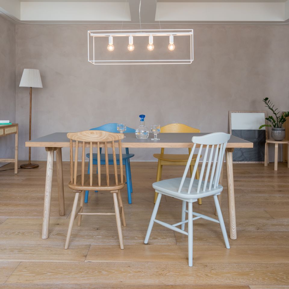 メラミンの優れた耐久・耐汚性ENENオリジナルのKUUM Tableシリーズ。メラミン天板は、熱・傷・汚れに強いことが特徴です。食器やパソコンなど熱いものを置いても変形したり跡が残ったりしづらく、液体をこぼしても染み込まないため簡単に拭き取りが可能です。ダイニングテーブルやデスクワーク用のテーブルとして最適です。 アルコールでの拭き取りもOKメラミンは耐薬品性もあるため、塗装商品にはNGのアルコールなどでの拭き取りも可能です。メラミン×天然木を楽しむENENのメラミン天板は、購入時の色合いのまま長くお使いいただけます。また木口面に厚みのある天然木単板を貼った遊び心あるデザインで、天然木の質感がお好みの方もお楽しみいただけます。グレーの天板は落ち着いた雰囲気を演出でき、他の色と調和しやすいため、さまざまなインテリアアイテムと合わせることができます。 2人掛けのテーブルにおすすめW800×D800のサイズは、2人掛けのダイニングテーブルとしてちょうどいいコンパクトなサイズです。小規模なキッチンにも容易に設置できるため、一人暮らしや小さな家族にも適しています。お部屋の大きさに合わせて選んでいただけるように、天板サイズは5パターンを販売しております。 脚のデザインは全10種類 木製の脚は2種類×2色、鉄製の脚は3種類×2色から選ぶことができます。脚だけでも10種類と、多くの選択肢があるため理想のデザインに仕上げていただけます。木製の脚と合わせればアクセントカラーの効いた北欧テイストな雰囲気、鉄製の脚と合わせればモダンやインダストリアルな雰囲気になります。長年の使用でも安心なパーツ販売KUUM Tableのパーツは、単品でも販売しております。長年使用する中で、一部が傷んだり汚れたりしても、その部分だけご購入・交換いただくことで、より長く、きれいな状態で使い続けることができます。天板と脚の取付方法はどのデザインでも共通で、簡単に交換や変更が可能です。