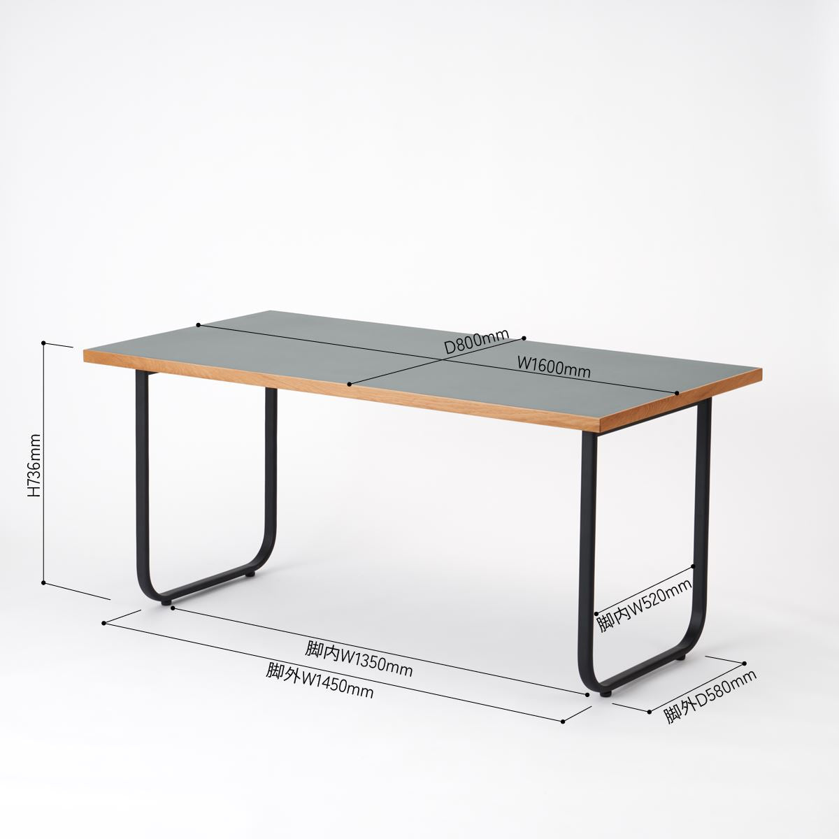 KUUM Table W1600×D800 メラミングレー 鉄脚オーバル