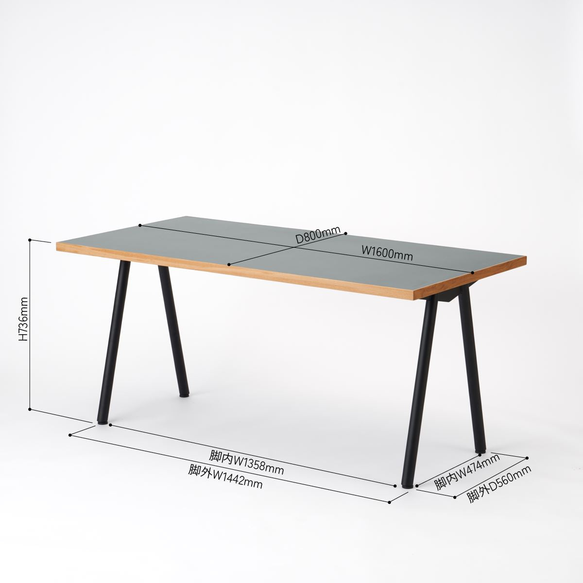 KUUM Table W1600×D800 メラミングレー 鉄脚 V