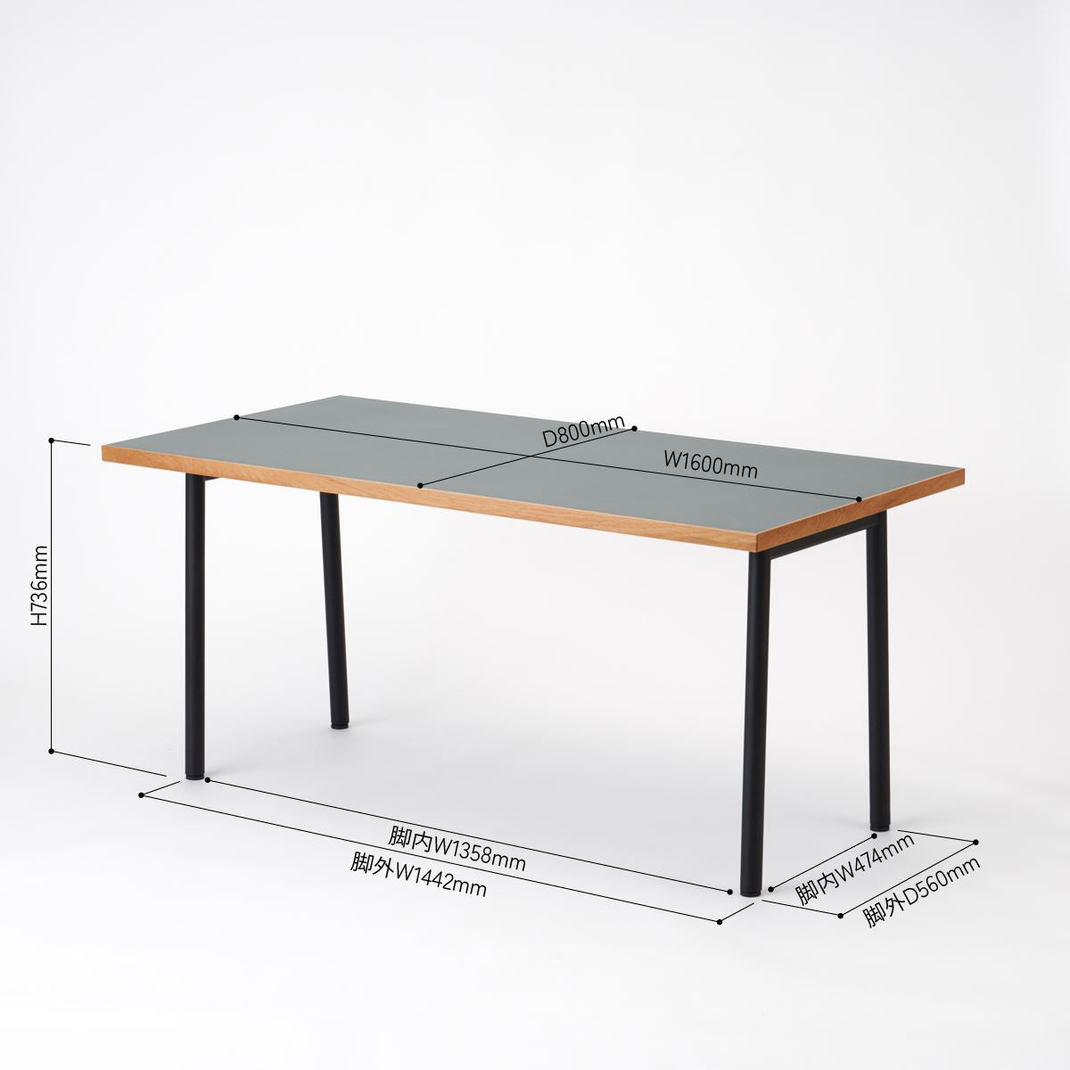 KUUM Table W1600×D800 メラミングレー 鉄脚 U
