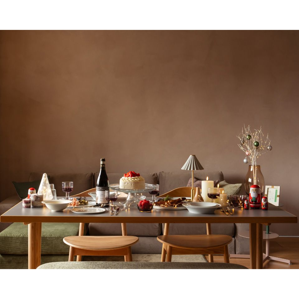 メラミンの優れた耐久・耐汚性ENENオリジナルのKUUM Tableシリーズ。メラミン天板は、熱・傷・汚れに強いことが特徴です。食器やパソコンなど熱いものを置いても変形したり跡が残ったりしづらく、液体をこぼしても染み込まないため簡単に拭き取りが可能です。ダイニングテーブルやデスクワーク用のテーブルとして最適です。 アルコールでの拭き取りもOKメラミンは耐薬品性もあるため、塗装商品にはNGのアルコールなどでの拭き取りも可能です。メラミン×天然木を楽しむENENのメラミン天板は、購入時の色合いのまま長くお使いいただけます。また木口面に厚みのある天然木単板を貼った遊び心あるデザインで、天然木の質感がお好みの方もお楽しみいただけます。グレーの天板は落ち着いた雰囲気を演出でき、他の色と調和しやすいため、さまざまなインテリアアイテムと合わせることができます。広々とした、ゆとりのある天板W1800×D800のサイズは、食器やお料理をたくさん置くことができ、4~6人掛けのダイニングテーブルとしてお使いいただけます。複数の人が同時に使用しても圧迫感を感じずに、快適に過ごすことができます。ご家庭だけでなく、オフィスや会議室などでも重宝される広々としたサイズです。お部屋の大きさに合わせて選んでいただけるように、天板サイズは5パターンを販売しております。脚のデザインは全10種類 木製の脚は2種類×2色、鉄製の脚は3種類×2色から選ぶことができます。脚だけでも10種類と、多くの選択肢があるため理想のデザインに仕上げていただけます。木製の脚と合わせればアクセントカラーの効いた北欧テイストな雰囲気、鉄製の脚と合わせればモダンやインダストリアルな雰囲気になります。長年の使用でも安心なパーツ販売KUUM Tableのパーツは、単品でも販売しております。長年使用する中で、一部が傷んだり汚れたりしても、その部分だけご購入・交換いただくことで、より長く、きれいな状態で使い続けることができます。天板と脚の取付方法はどのデザインでも共通で、簡単に交換や変更が可能です。