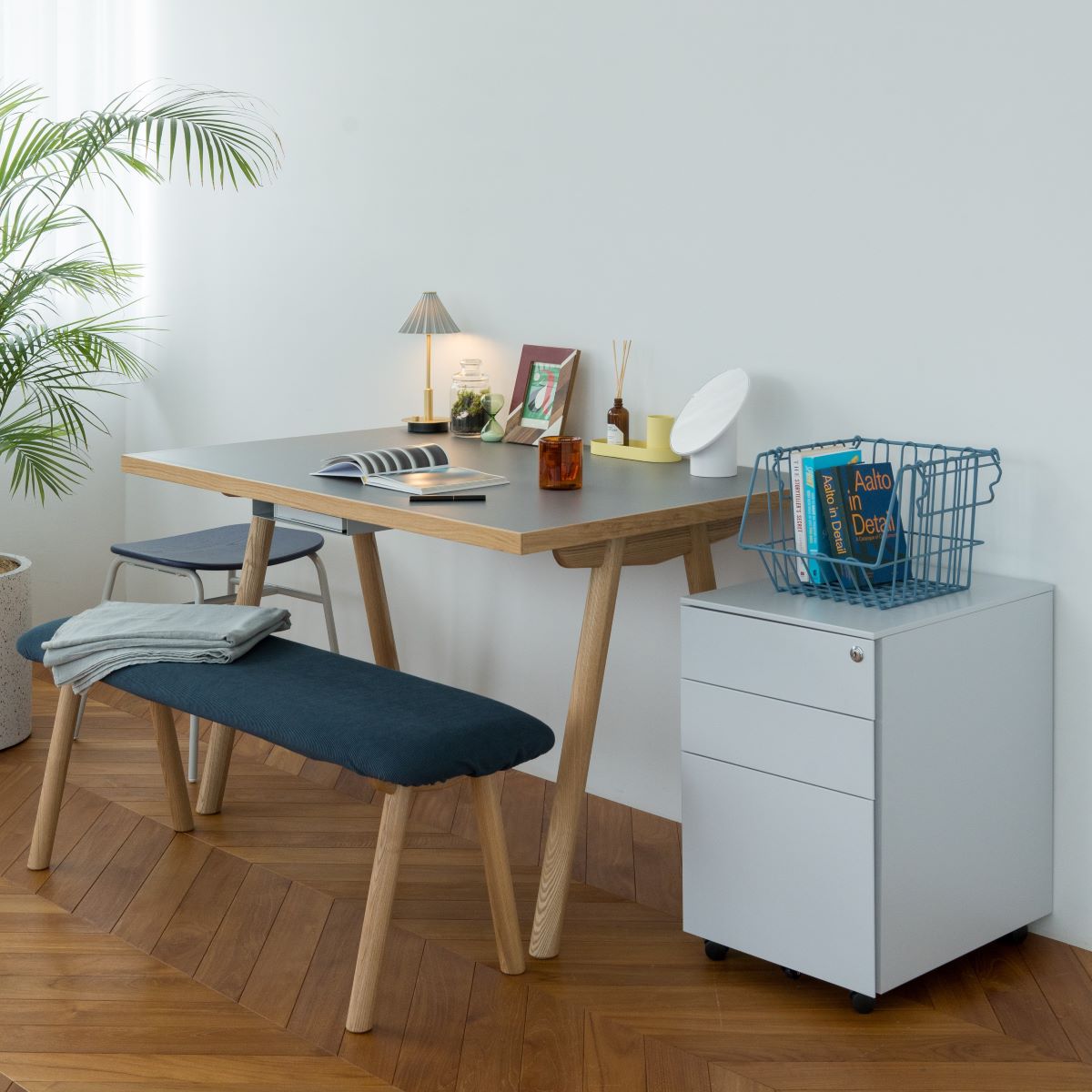 メラミンの優れた耐久・耐汚性ENENオリジナルのKUUM Tableシリーズ。メラミン天板は、熱・傷・汚れに強いことが特徴です。食器やパソコンなど熱いものを置いても変形したり跡が残ったりしづらく、液体をこぼしても染み込まないため簡単に拭き取りが可能です。ダイニングテーブルやデスクワーク用のテーブルとして最適です。 アルコールでの拭き取りもOKメラミンは耐薬品性もあるため、塗装商品にはNGのアルコールなどでの拭き取りも可能です。メラミン×天然木を楽しむENENのメラミン天板は、購入時の色合いのまま長くお使いいただけます。また木口面に厚みのある天然木単板を貼った遊び心あるデザインで、天然木の質感がお好みの方もお楽しみいただけます。グレーの天板は落ち着いた雰囲気を演出でき、他の色と調和しやすいため、さまざまなインテリアアイテムと合わせることができます。 1人掛けのデスクにおすすめW1200×D600のサイズは、両手を広げてちょうど届く範囲の幅と、すっきりとした奥行きのため、一人掛けのデスクにおすすめです。限られたスペースでも設置しやすく、コンパクトな長方形の2人掛けのダイニングテーブルとしてもご使用いただけます。お部屋の大きさに合わせて選んでいただけるように、天板サイズは5パターンを販売しております。 脚のデザインは全10種類木製の脚は2種類×2色、鉄製の脚は3種類×2色から選ぶことができます。脚だけでも10種類と、多くの選択肢があるため理想のデザインに仕上げていただけます。木製の脚と合わせればアクセントカラーの効いた北欧テイストな雰囲気、鉄製の脚と合わせればモダンやインダストリアルな雰囲気になります。長年の使用でも安心なパーツ販売KUUM Tableのパーツは、単品でも販売しております。長年使用する中で、一部が傷んだり汚れたりしても、その部分だけご購入・交換いただくことで、より長く、きれいな状態で使い続けることができます。天板と脚の取付方法はどのデザインでも共通で、簡単に交換や変更が可能です。