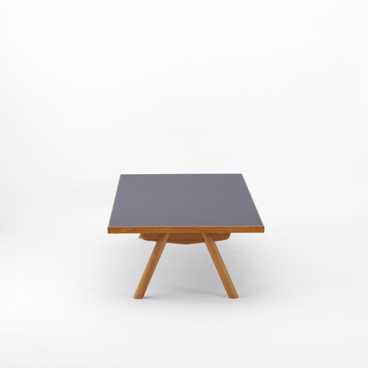 メラミンの優れた耐久・耐汚性ENENオリジナルのKUUM Tableシリーズ。メラミン天板は、熱・傷・汚れに強いことが特徴です。食器やパソコンなど熱いものを置いても変形したり跡が残ったりしづらく、液体をこぼしても染み込まないため簡単に拭き取りが可能です。 アルコールでの拭き取りもOKメラミンは耐薬品性もあるため、塗装商品にはNGのアルコールなどでの拭き取りも可能です。メラミン×天然木を楽しむENENのメラミン天板は、購入時の色合いのまま長くお使いいただけます。また木口面に厚みのある天然木単板を貼った遊び心あるデザインで、天然木の質感がお好みの方もお楽しみいただけます。ネイビーの天板は、お部屋全体を上品な雰囲気にまとめることができます。深みのある色味がリラックス効果を生むため、ゆっくり過ごしたい空間にも最適です。4人用のリビングテーブルにおすすめW1600×D800のサイズは、4人用のリビングテーブルにちょうどいい大きさです。中央に料理を置いた状態でもゆとりを持って食事を楽しむことができます。作業やお勉強、集まりなど多用途に使用できる広めのスペースです。お部屋の大きさに合わせて選んでいただけるように、天板サイズは5パターンを販売しております。脚のデザインは全4種類 木製の脚2色、鉄製の脚2色から選ぶことができます。木製の脚と合わせればアクセントカラーの効いた北欧テイストな雰囲気、鉄製の脚と合わせればモダンやインダストリアルな雰囲気になります。長年の使用でも安心なパーツ販売KUUM Tableのパーツは、単品でも販売しております。長年使用する中で、一部が傷んだり汚れたりしても、その部分だけご購入・交換いただくことで、より長く、きれいな状態で使い続けることができます。天板と脚の取付方法はどのデザインでも共通で、簡単に交換や変更が可能です。