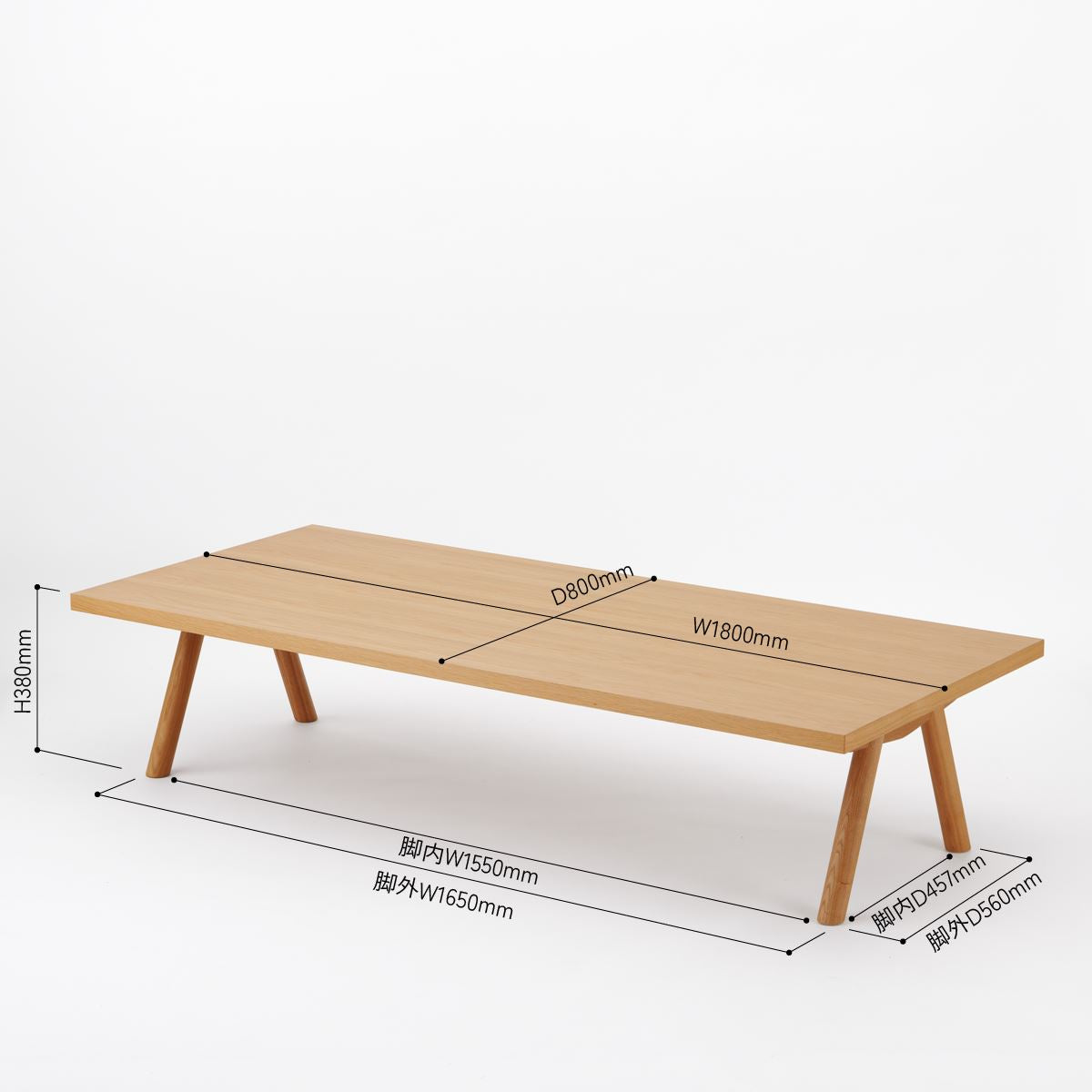 KUUM Living Table W1800×D800 アッシュ無垢材ナチュラル Wood