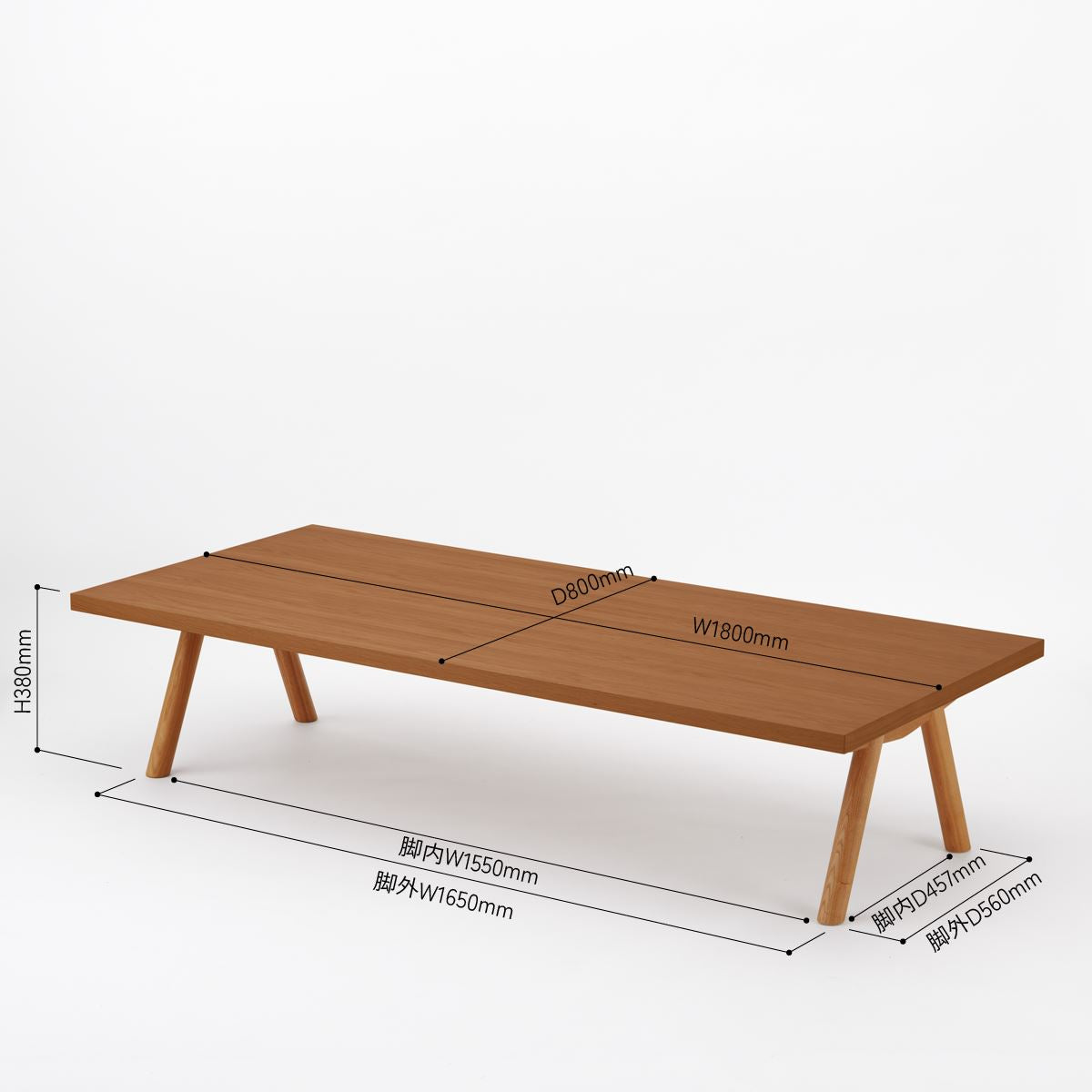 KUUM Living Table W1800×D800 アッシュ無垢材ブラウン Wood
