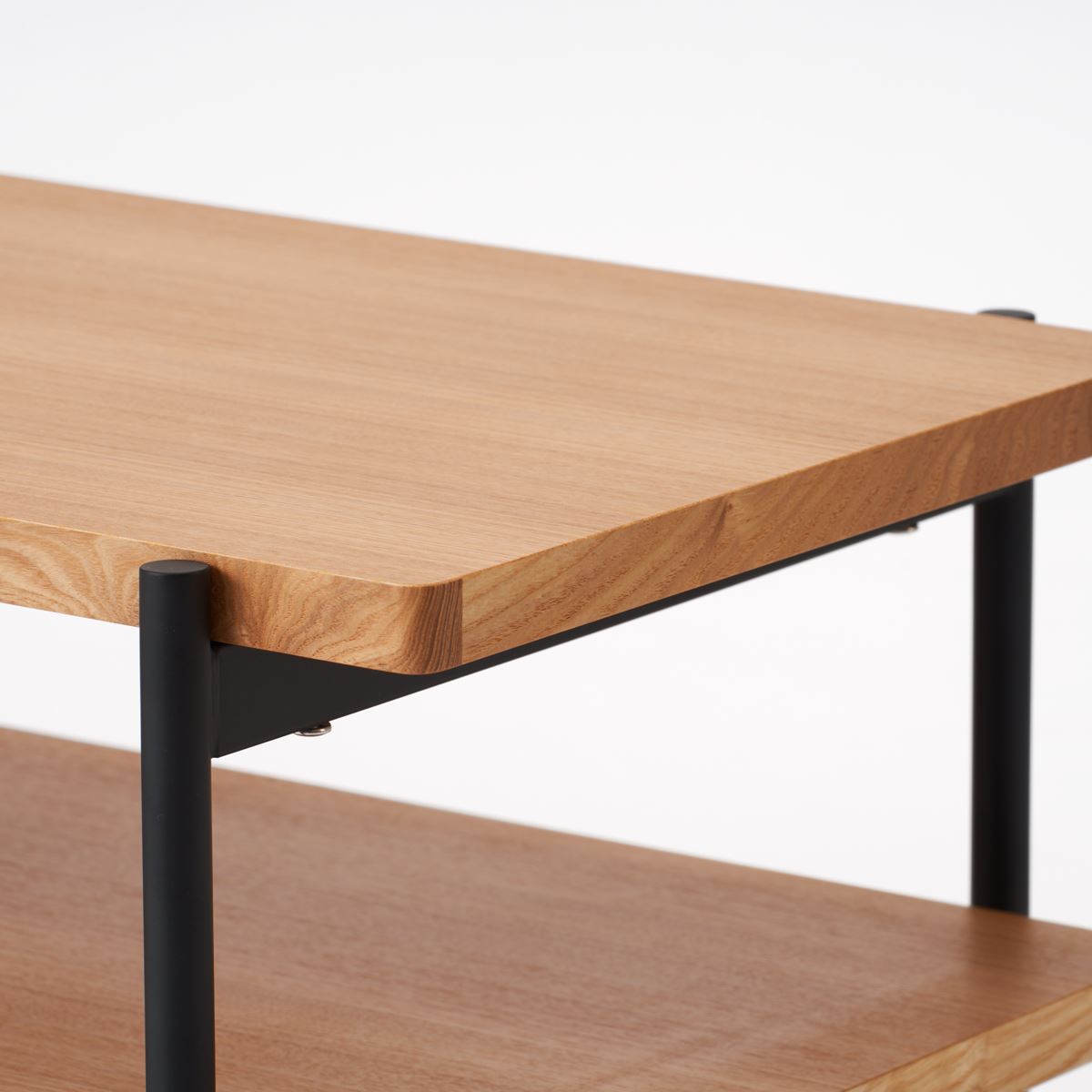 シンプルな木フレームとアイアンを使用した天板の組み合わせで、無駄のないフォルムのリビングテーブル。どんなシーンにも自然に馴染み、お部屋の雰囲気を壊すことなくお使いいただけます。棚付きなので収納機能もあり、使いやすさも考えられた設計になっています。