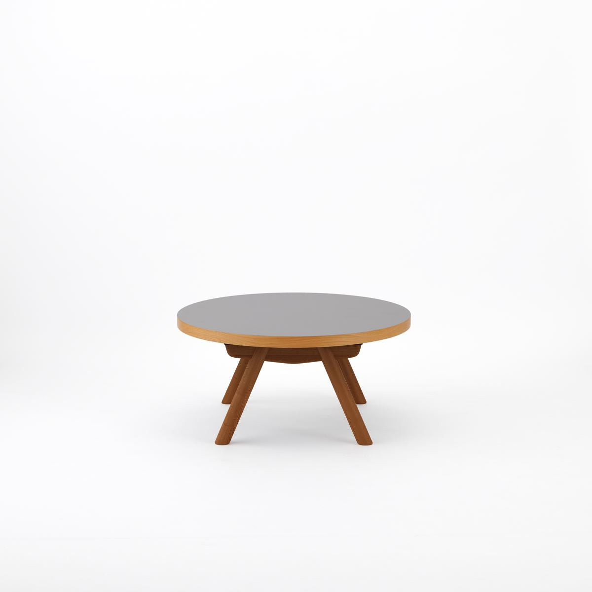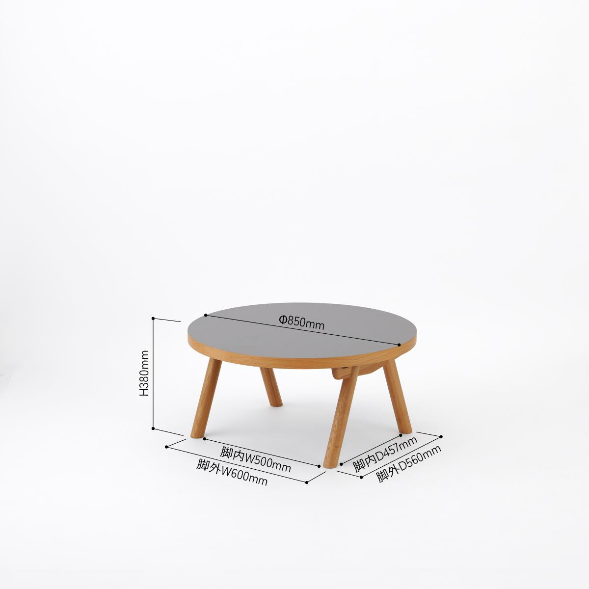 メラミンの優れた耐久・耐汚性ENENオリジナルのKUUM Tableシリーズ。メラミン天板は、熱・傷・汚れに強いことが特徴です。食器やパソコンなど熱いものを置いても変形したり跡が残ったりしづらく、液体をこぼしても染み込まないため簡単に拭き取りが可能です。 アルコールでの拭き取りもOKメラミンは耐薬品性もあるため、塗装商品にはNGのアルコールなどでの拭き取りも可能です。メラミン×天然木を楽しむENENのメラミン天板は、購入時の色合いのまま長くお使いいただけます。また木口面に厚みのある天然木単板を貼った遊び心あるデザインで、天然木の質感がお好みの方もお楽しみいただけます。グレーの天板は落ち着いた雰囲気を演出でき、他の色と調和しやすいため、さまざまなインテリアアイテムと合わせることができます。会話が弾む、柔らかい印象の円型テーブルΦ850のサイズは、1人の場合はゆったりとしたスペースで使用でき、2人の場合は遠すぎず程よい距離感でお使いいただけます。角がなく自由に座ることができ、人数が増えても使用しやすく、柔軟性があります。顔を合わせやすいことから自然と会話が弾む効果があるため、家族や友人との集まりにも最適です。脚のデザインは全4種類 木製の脚2色、鉄製の脚2色から選ぶことができます。木製の脚と合わせればアクセントカラーの効いた北欧テイストな雰囲気、鉄製の脚と合わせればモダンやインダストリアルな雰囲気になります。長年の使用でも安心なパーツ販売KUUM Tableのパーツは、単品でも販売しております。長年使用する中で、一部が傷んだり汚れたりしても、その部分だけご購入・交換いただくことで、より長く、きれいな状態で使い続けることができます。天板と脚の取付方法はどのデザインでも共通で、簡単に交換や変更が可能です。