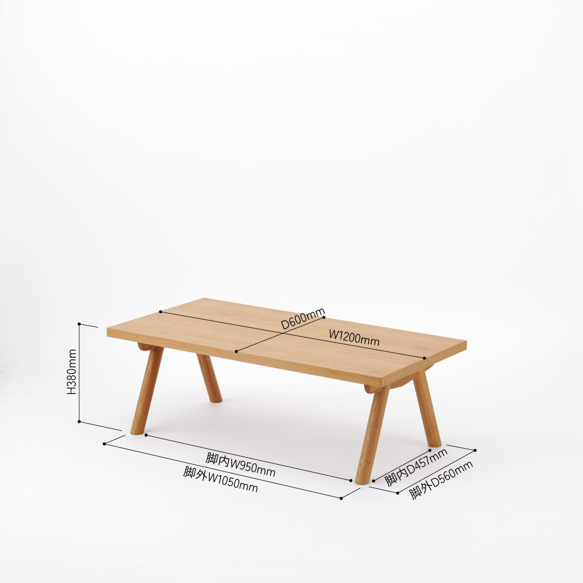 KUUM Living Table W1200×D600 アッシュ無垢材ナチュラル Wood