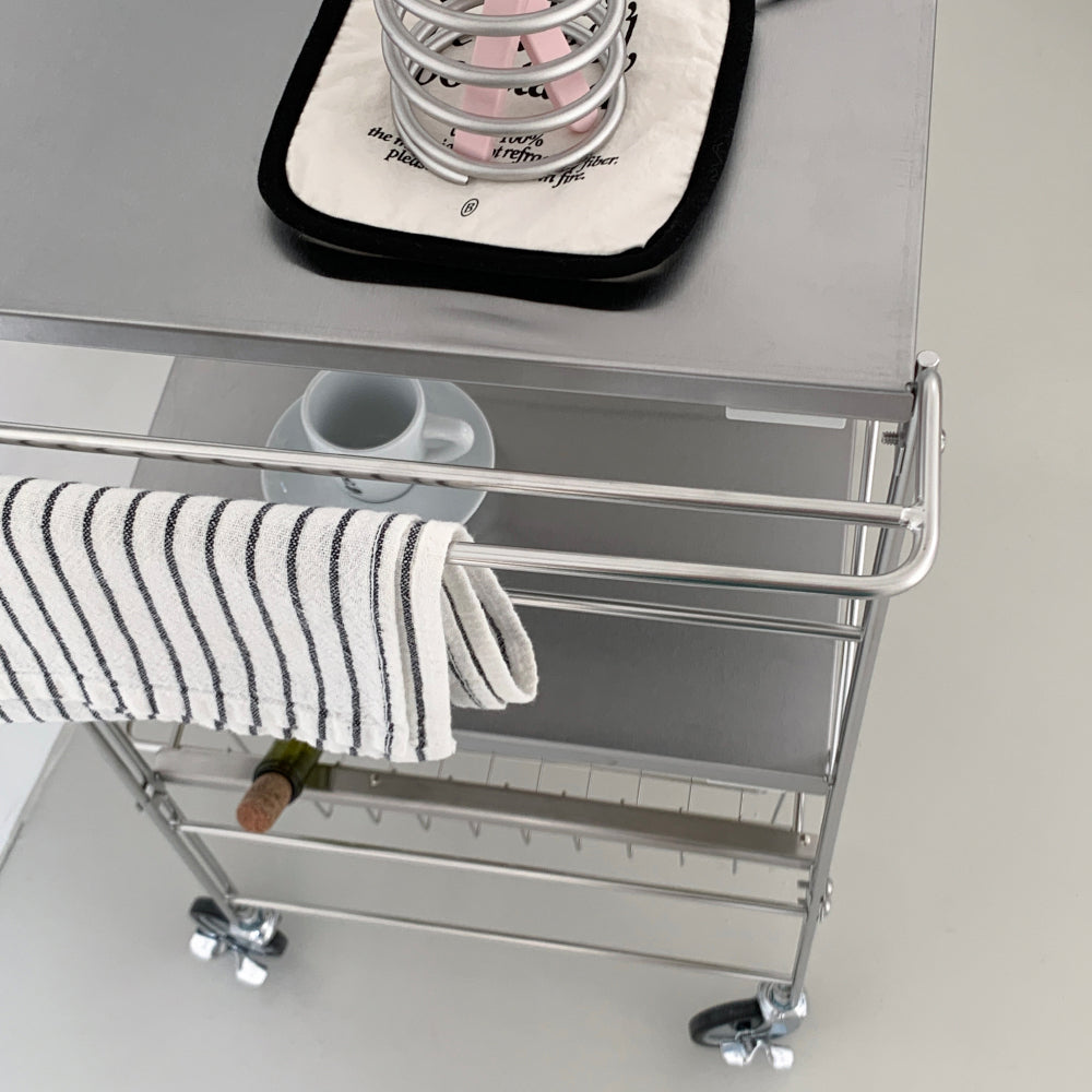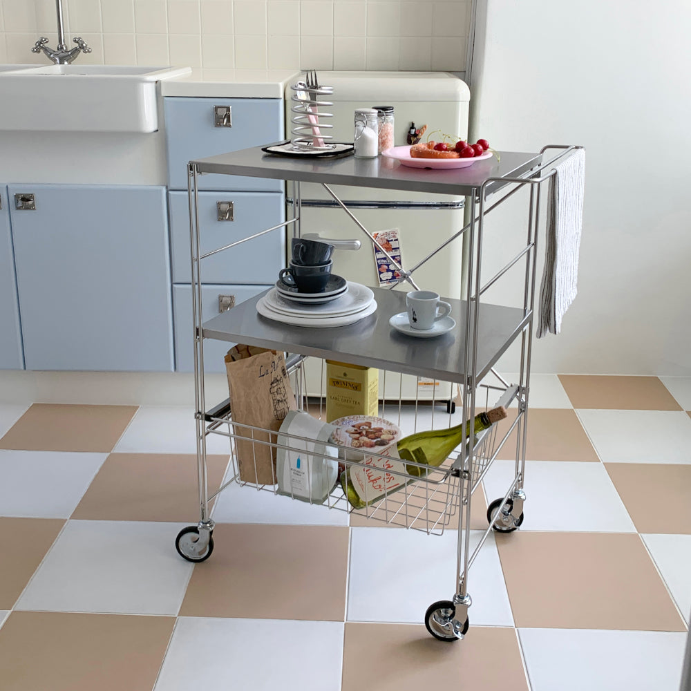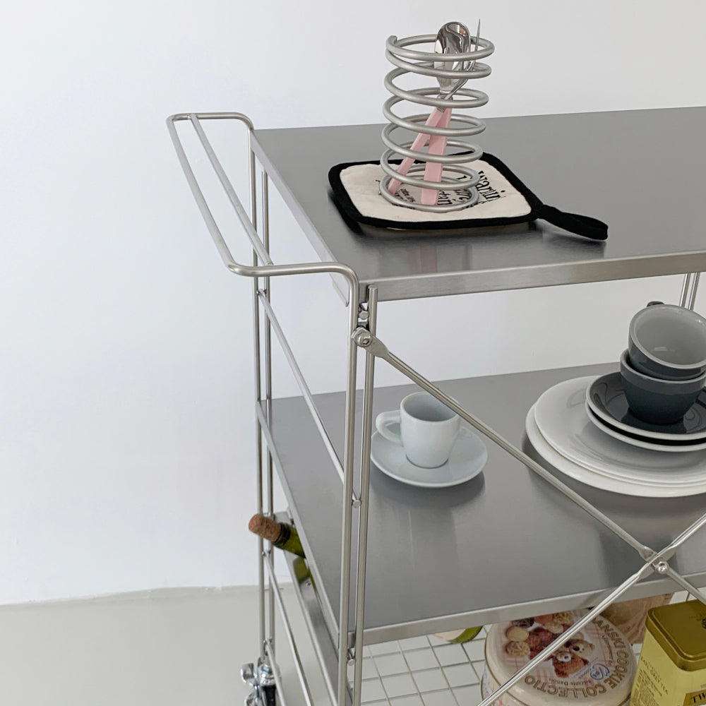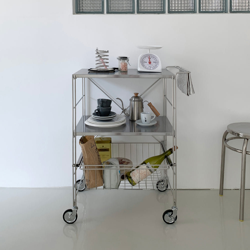 Ogre オグレ フラットステンレス3段トロリーは、キッチンやダイニングで活躍。省スペースで自由に使える収納ワゴンです。