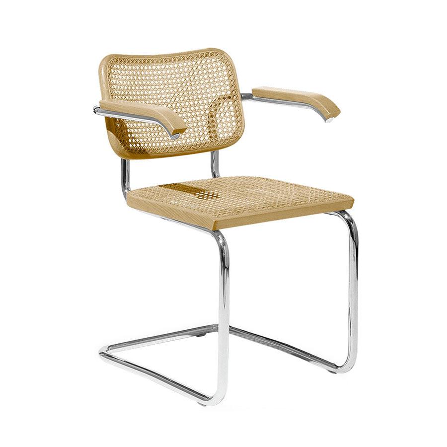 マルセル・ブロイヤーによってデザインされ、それから90年以上経った今でもカンチレバー構造の名作としてパブリック・住宅などあらゆるシーンで使われているバウハウスデザインの家具を代表する椅子です。1本のスチールパイプだけでできた基本構造や籐張りの背と座、後ろ脚のないカンチレバー構造が、座った時に適度な弾力を生み出します。一本のスチールパイプが体の重さを支えて、細部のクオリティが美しさと快適な座り心地となって現れています。愛娘の名前から「チェスカチェア」と命名されました。