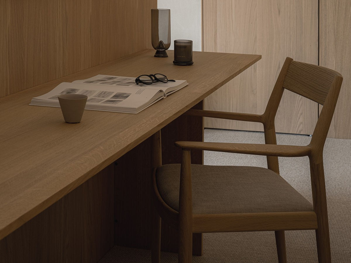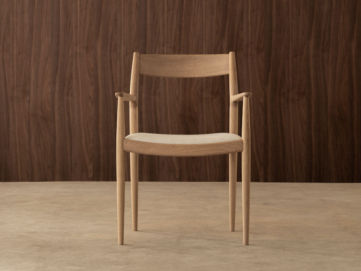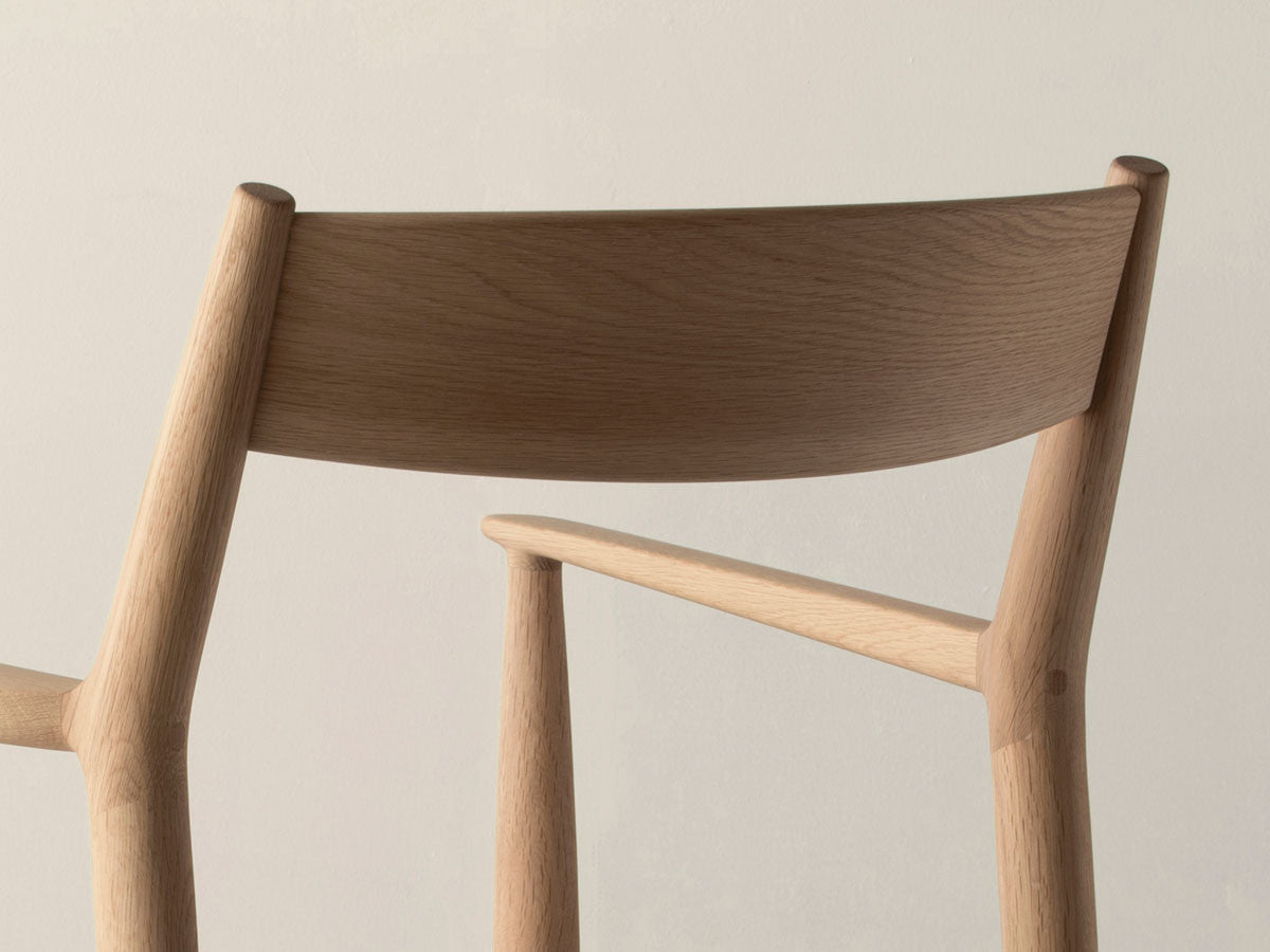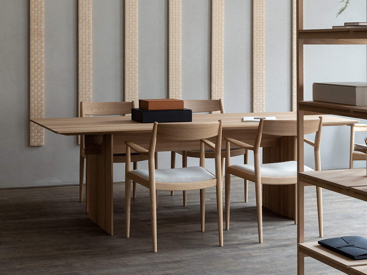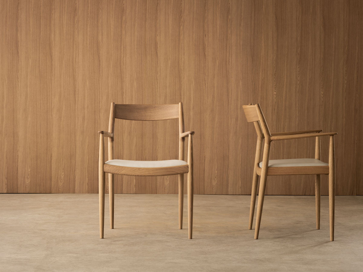 どの方向から見ても、加える要素も削る要素もない、ソフトミニマリズムを体現した緻密なデザイン。このダイニングチェアはデザイナーがカリモクの工場を視察し、職人と現場でワークショップを行った結果生まれたピースです。既存のパーツをアップデートすることで、日本とスカンジナビアのデザインが持つ審美性を融合。構造はシンプルながらも、暖かく、親しみやすい、クラシックチェアを生み出しました。非常に線が細く緻密なディテールを形にするために木工技術の限界に挑み、求めるデザイン性と強度との両立を実現しています。デンマークと日本、両国の相互的な敬意から生まれたカリモクケースには、両国のデザインの伝統に明白に息づく自然とのつながりが感じられます。現在、都市生活者の間では、天然の素材で作られた環境に囲まれた、感性を刺激する空間としての自宅に対するニーズが高まっています。これは自然とのつながりを再び持ちたいという願望を反映しています。カリモクケースでは、自宅に良質で自然を感じさせるカリモクデザインを採用することで、シンプルかつ効果的に生活の質を高めることができると考えています。