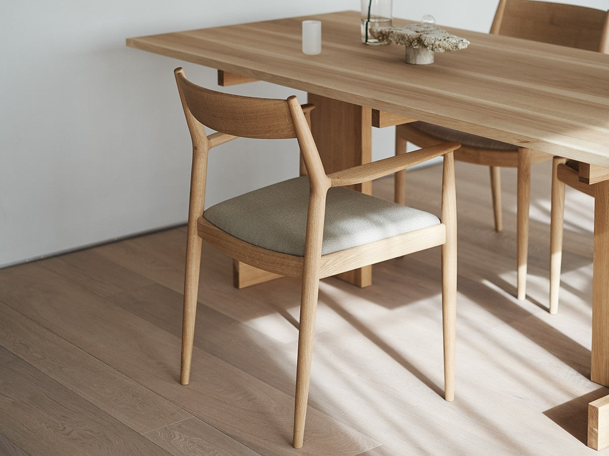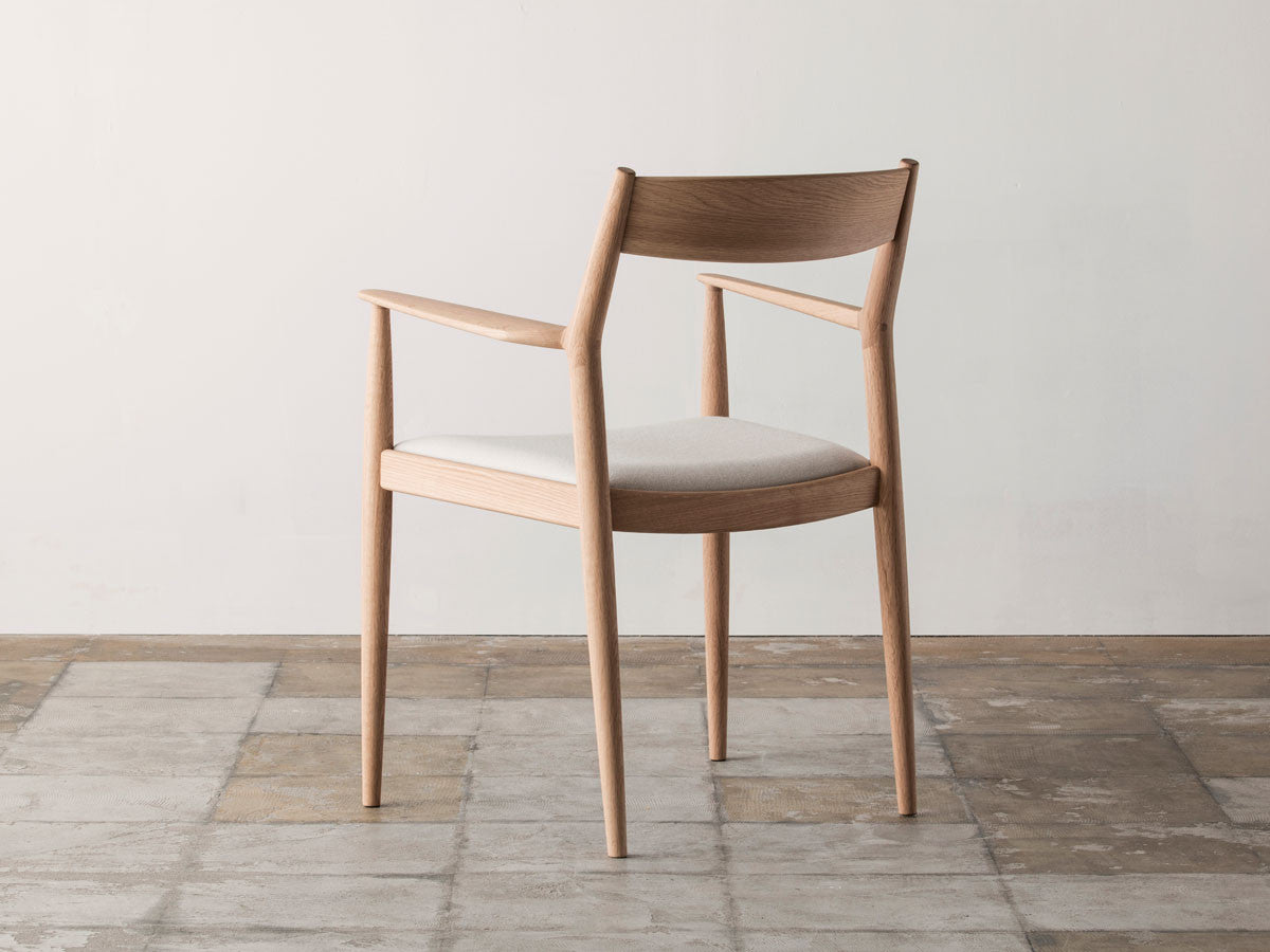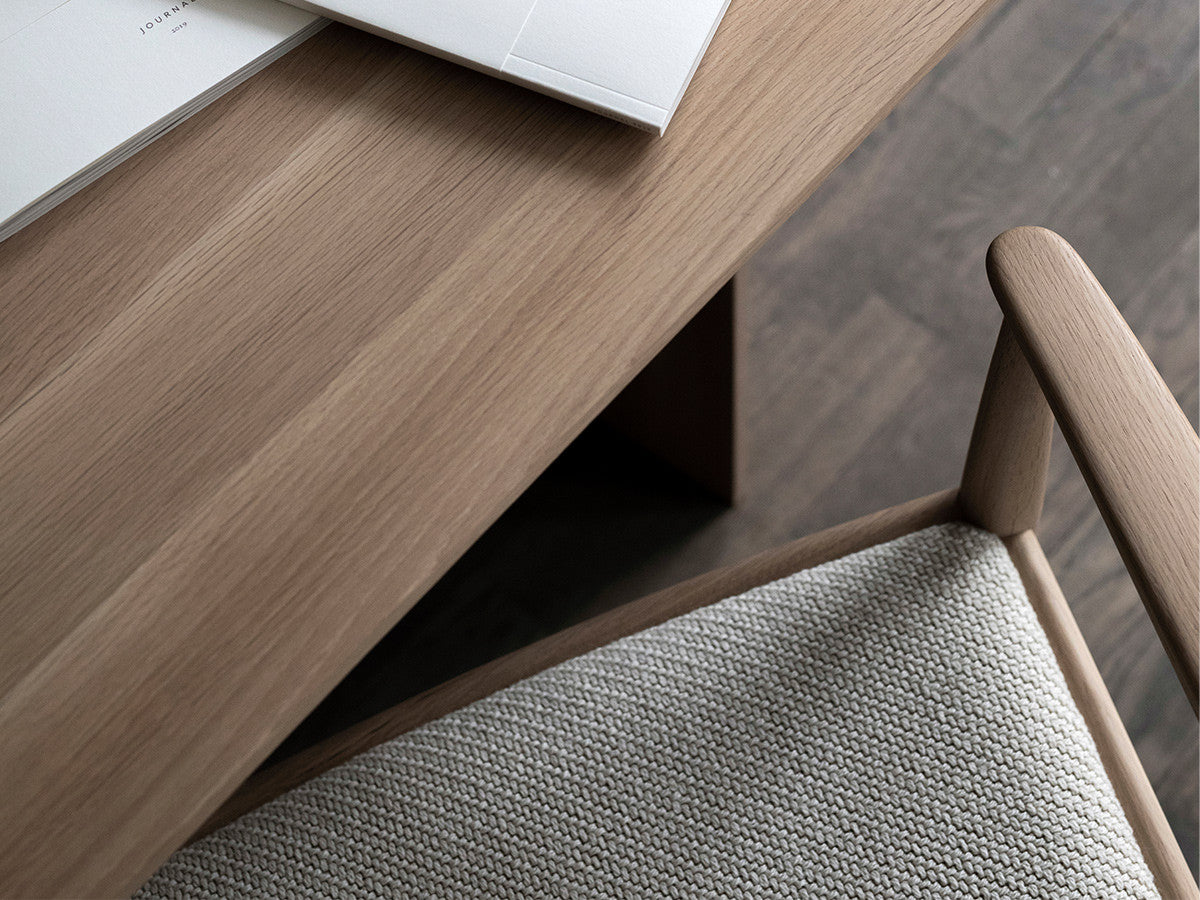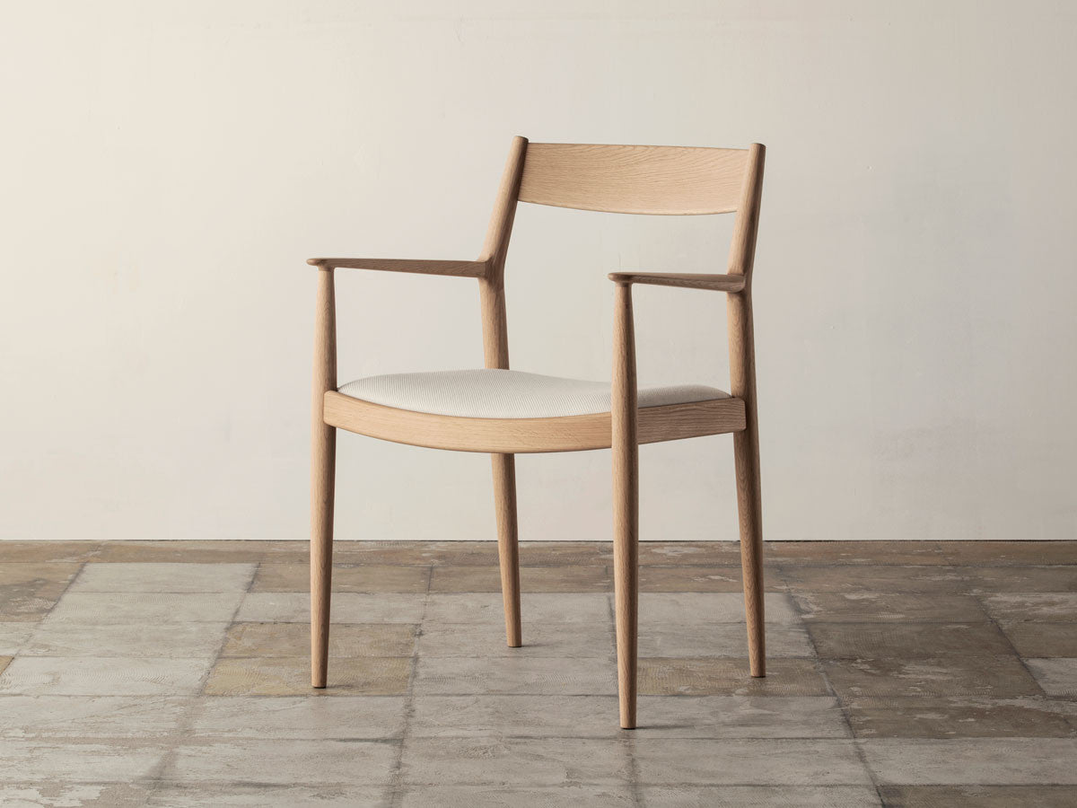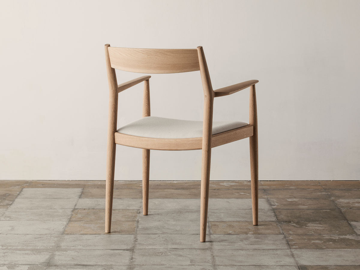 どの方向から見ても、加える要素も削る要素もない、ソフトミニマリズムを体現した緻密なデザイン。このダイニングチェアはデザイナーがカリモクの工場を視察し、職人と現場でワークショップを行った結果生まれたピースです。既存のパーツをアップデートすることで、日本とスカンジナビアのデザインが持つ審美性を融合。構造はシンプルながらも、暖かく、親しみやすい、クラシックチェアを生み出しました。非常に線が細く緻密なディテールを形にするために木工技術の限界に挑み、求めるデザイン性と強度との両立を実現しています。デンマークと日本、両国の相互的な敬意から生まれたカリモクケースには、両国のデザインの伝統に明白に息づく自然とのつながりが感じられます。現在、都市生活者の間では、天然の素材で作られた環境に囲まれた、感性を刺激する空間としての自宅に対するニーズが高まっています。これは自然とのつながりを再び持ちたいという願望を反映しています。カリモクケースでは、自宅に良質で自然を感じさせるカリモクデザインを採用することで、シンプルかつ効果的に生活の質を高めることができると考えています。